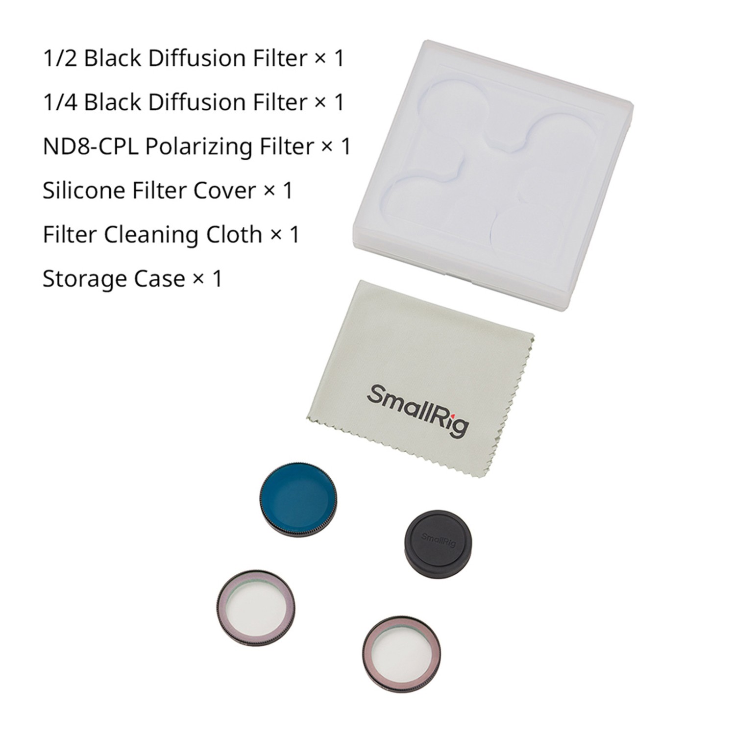 Das SmallRig 1/2 Black Diffusion & 1/4 Black Diffusion & ND8-CPL Polarisationsfilter-Kit für DJI Osmo Nano 5789 wurde speziell für den DJI Osmo Nano entwickelt. Dieses Kit enthält einen 1/2 Black Diffusion Filter, einen 1/4 Black Diffusion Filter und einen ND8-CPL Polarisationsfilter.