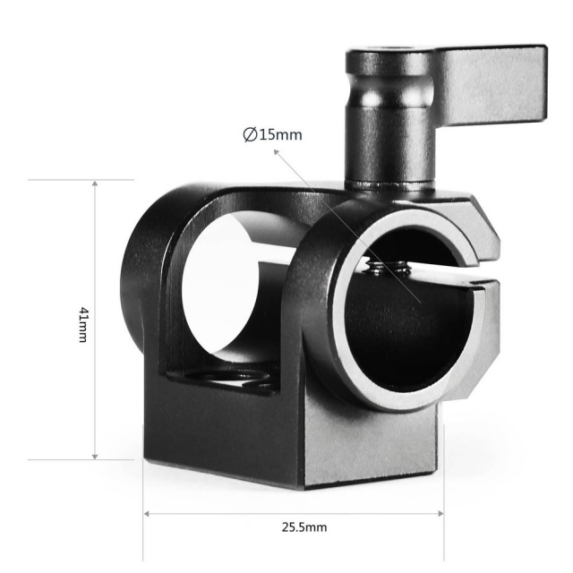 Die SmallRig 15mm Stangenklemme 1995 ist mit zwei Gewindebohrungen und einer 1/4''-Gewindebohrung ausgestattet. Er kann mit zwei M4-Schrauben an den SmallRig 1955 Griffen befestigt werden und funktioniert mit der 15-mm-Stange für die 1802 Mikrofonhalterung. In anderen Szenarien funktioniert es mit der 15-mm-Stange für den Single RailBlock 860 oder die Mini-Montageplatte 1906 und dann mit Monitoren. Das 1/4''-Gewindeloch kann für eine DIY-Option verwendet werden.