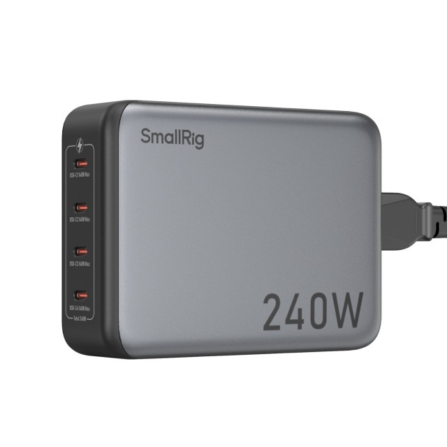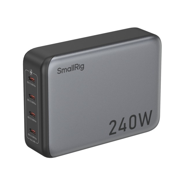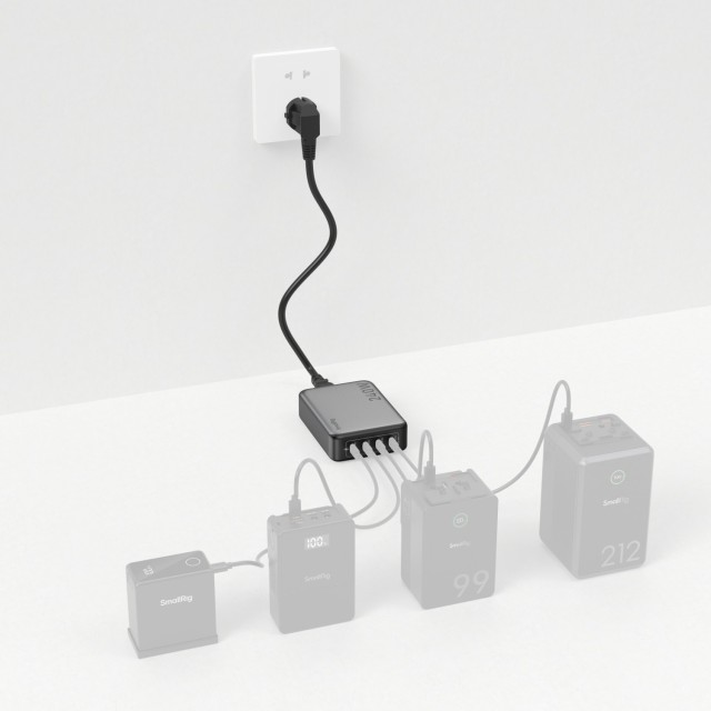 SmallRig 240W 4-Port PD Power Adapter (EU Standard) 4752 ist ein hocheffizientes und vielseitiges Ladegerät mit einer Gesamtausgangsleistung von 240W. Mit vier USB-C-Anschlüssen unterstützt dieses Ladegerät das gleichzeitige Aufladen mehrerer Geräte wie V-Mount-Akkus, NP-F-Akkus, wiederaufladbare Kamera-Akkus, Smartphones, Computer, Kameras und mehr, wodurch es sich für verschiedene Nutzungsszenarien eignet. Alle Anschlüsse unterstützen schnelles Laden, wobei jeder Anschluss über PD3.1 eine Ausgangsleistung von bis zu 140 W (max.) unterstützt, was eine starke Unterstützung für Hochleistungsgeräte bietet und die Ladeeffizienz erheblich verbessert. Jeder Ausgangsanschluss ist mit einem Kurzschluss- und Überstromschutz ausgestattet, um eine sichere Nutzung zu gewährleisten. Die kompakte Größe des Ladegeräts macht es außerdem praktisch für Reisen und den täglichen Gebrauch.