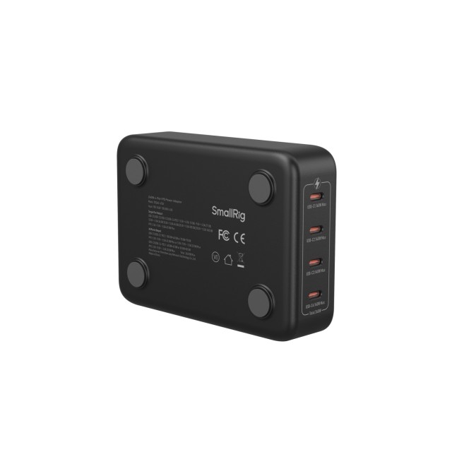 SmallRig 240W 4-Port PD Power Adapter (EU Standard) 4752 ist ein hocheffizientes und vielseitiges Ladegerät mit einer Gesamtausgangsleistung von 240W. Mit vier USB-C-Anschlüssen unterstützt dieses Ladegerät das gleichzeitige Aufladen mehrerer Geräte wie V-Mount-Batterien, NP-F-Batterien, wiederaufladbare Kamera-Akkus, Smartphones, Computer, Kameras und mehr, wodurch es sich für verschiedene Nutzungsszenarien eignet. Alle Anschlüsse unterstützen schnelles Laden, wobei jeder Anschluss über PD3.1 eine Ausgangsleistung von bis zu 140 W (max.) unterstützt, was eine starke Unterstützung für Hochleistungsgeräte bietet und die Ladeeffizienz erheblich verbessert. Jeder Ausgangsanschluss ist mit einem Kurzschluss- und Überstromschutz ausgestattet, um eine sichere Nutzung zu gewährleisten. Die kompakte Größe des Ladegeräts macht es außerdem praktisch für Reisen und den täglichen Gebrauch.