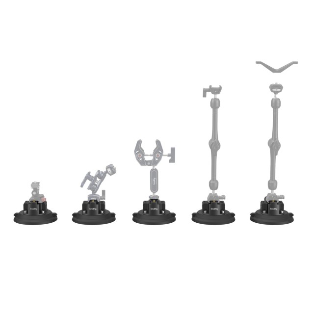 SmallRig 4'' Saugnapf-Kamerahalterung für Fahrzeugaufnahmen 4122B besteht aus einer Saugnapfhalterung, einem Saugnapf, einer Handpumpe und einer Staubschutzhülle. Die Saugnapf-Kamerahalterung, die größtenteils aus robustem und verschleißfestem NBR besteht, kann bei -40°C bis 60°C eingesetzt werden. Sie lässt sich nicht leicht verformen und bietet eine hohe Luftdichtigkeit, die für saubere, trockene und glatte Oberflächen geeignet ist. Mit seiner starken Saugkraft hat er eine maximale horizontale Saugkraft von 50 kg und eine maximale vertikale Saugkraft von 35 kg. Die Saugnapf-Kamerahalterung aus Aluminiumlegierung verfügt über Befestigungspunkte für Zubehör wie 1/4"-20-Gewindebohrungen, 3/8"-16-Gewindebohrungen und ARRI 3/8"-16-Aufnahmelöcher für die Befestigung von 3757B, 3873, 3874, 3875, 2906B, 2070B usw. Sie wird manuell gepumpt und verriegelt und verfügt über eine Sicherheitsanzeige, um Sicherheit und Zuverlässigkeit zu gewährleisten. Bei Nichtgebrauch sollte die Staubschutzhaube aufgesetzt werden, um Staub zu vermeiden und die Lebensdauer zu erhöhen.