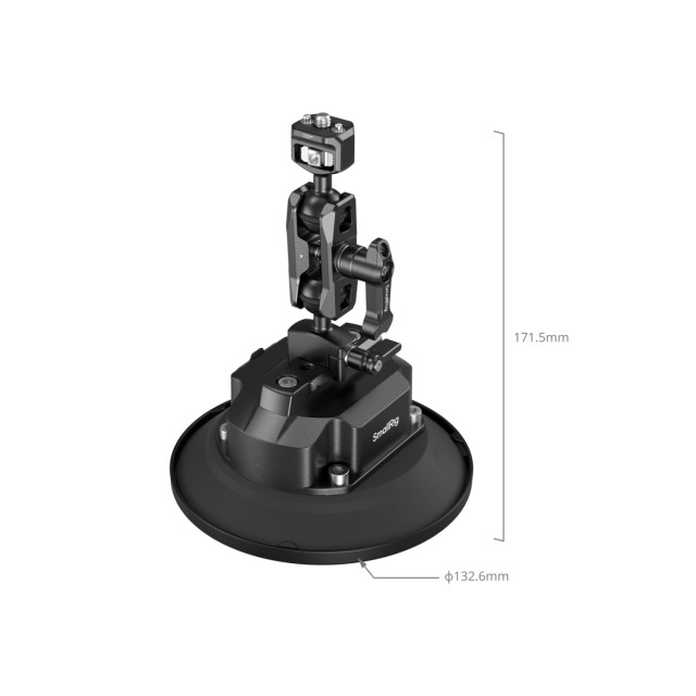 Die Montagebasis aus Aluminiumlegierung verfügt über mehrere Schnittstellen, darunter verdrehsichere 1/4"-20- und 3/8"-16-Gewindebohrungen sowie 3/8"-16-ARRI-Befestigungslöcher. Diese Vielseitigkeit ermöglicht die Befestigung von Magic Arms für die Montage von Action-Kameras oder die Sicherung der Sicherheitsleine für dynamische Aufnahmen. Darüber hinaus ist eine Schutzabdeckung enthalten, um die Sauberkeit und Lebensdauer des Saugnapfes bei Nichtgebrauch zu gewährleisten.
