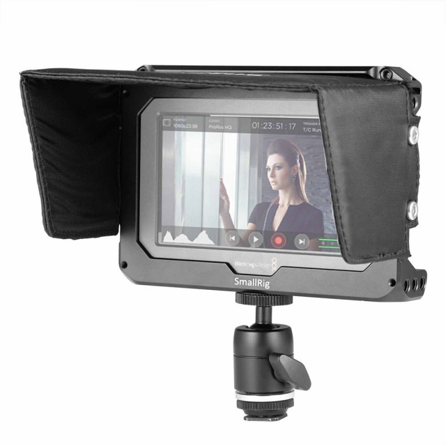 SMALLRIG Monitor Cage Accessory Kit 1981 ist ein 5'' Monitorkäfig mit Sonnenschutzdach. Dies ist eine großartige Möglichkeit, Ihren Blackmagic Video Assist Monitor zu schützen. Hergestellt aus CNC-gefrästem Aluminium, ist der Käfig sehr leicht und solide, und Sie haben trotzdem Zugang zu allen Funktionen des Monitors. Er verfügt über zahlreiche 1/4"-20- und 3/8"-16-Gewindebohrungen für zahlreiche Befestigungsmöglichkeiten. Eine integrierte und verdrehsichere NATO-Schiene an der Oberseite ermöglicht die direkte Befestigung von NATO-Standardzubehör. Die mitgelieferte HDMI-Klemme zum Schutz des HDMI-Anschlusses Ihrer Kamera. Außerdem ist eine Sonnenblende perfekt, um direktes Sonnenlicht zu verhindern und eine gute Sichtbarkeit des Bildes auf dem Bildschirm zu gewährleisten. Zusätzlich bieten wir einen SmallRig Monitorhalterungskugelkopf 1875 für eine einfache Montage an.