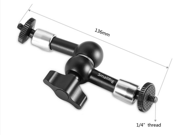 Es ist mit 1/4"-Schrauben an beiden Enden ausgestattet. So kann der Monitor mit der 1/4"-Schraube auf der einen Seite befestigt werden und auf der anderen Seite kann Zubehör mit 1/4"-20-Gewindebohrungen angebracht werden, wie z.B. Käfig, NATO-Schiene 1973, 15mm-Stange 1182 und Schnellverschluss-Stangenklemme 1976 usw. An der 1/4"-Schraube ist ein Gummipuffer angebracht, der Kratzer am Monitor verhindert und den Monitor fester fixiert. Es verfügt über eine ergonomische Flügelmutter für große Bequemlichkeit, die helfen könnte, um alle Winkel auf Ihre Bedürfnisse anzupassen.