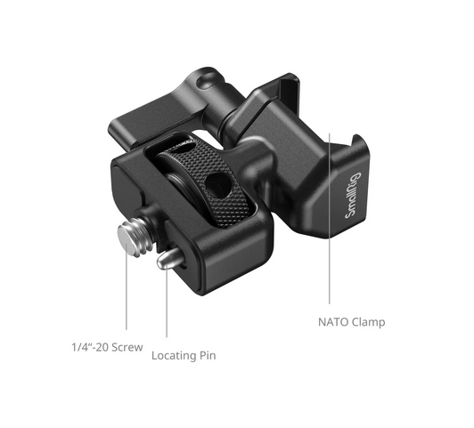 Befestigen Sie drahtlose Follow-Focus-Systeme oder Handrad-Controller sicher an NATO-Schienen oder 1/4"-20-Gewindebohrungen mit dem SmallRig Adapter 3264, einer kompakten 35 g Aluminiumklemme mit einer verwindungssteifen 1/4"-20-Schraube mit Positionierungsstift, einer Schnellverschluss-NATO-Klemme mit seitlicher Schraubensicherung und einer Tragkraft von 8 kg – perfekt für den Follow-Focus-Betrieb an der Seite des Käfigs mit den SmallRig-Kits 4296 und 429.