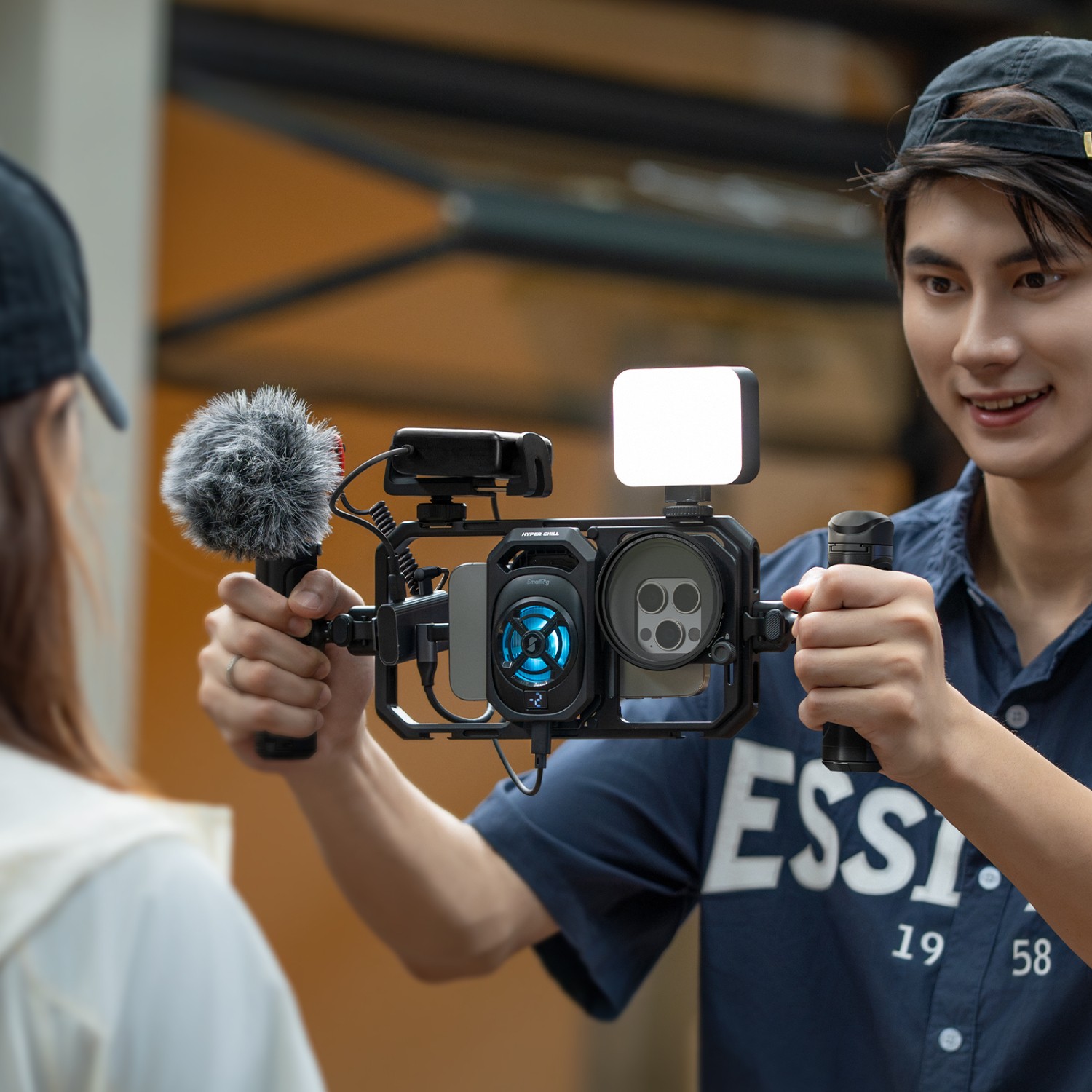 Das SmallRig All-in-One Thermal Live Streaming & Filming Handheld Phone Cage Kit 5276 ist ein umfassendes und integriertes Set für professionelle mobile Content-Ersteller. Dieses leichte Kit wurde für Komfort und Effizienz entwickelt und eignet sich perfekt für lange Live-Streams und kurze Videoaufnahmen. Das integrierte hocheffiziente 15-W-Kühlsystem sorgt für eine aktive Kühlung, um eine Überhitzung Ihres Smartphones bei längerem Gebrauch zu verhindern, und dient gleichzeitig als multifunktionale Erweiterungsplattform für die Montage von Zubehör wie Leuchten und Mikrofonen. Die stufenlose Drehung der Seitengriffe bietet verbesserte Stabilität und Komfort und erleichtert die Aufnahme von flüssigen, professionellen Aufnahmen. Mit einem vollständigen Schnellverschlusssystem ermöglicht der Cage schnelle und sichere Übergänge zwischen horizontaler und vertikaler Aufnahme und erleichtert den schnellen Wechsel anderer Geräte. Ein zentrales Merkmal dieses Kits ist der 4-in-1-USB-C-Hub, der Ladefunktion, Mikrofoneingang, Audioüberwachung und Datenübertragung in einem einzigen Anschluss vereint, wodurch Ihr Setup vereinfacht und Ihr Workflow optimiert wird.