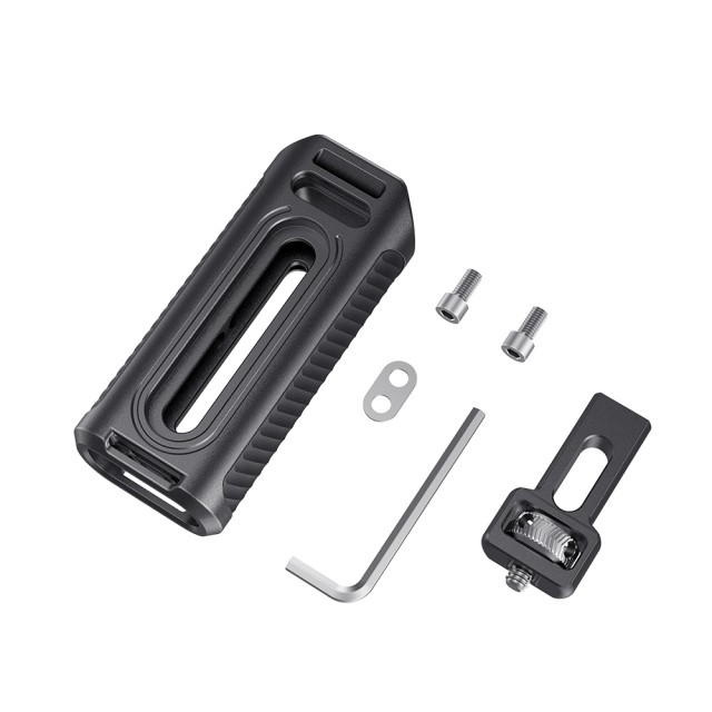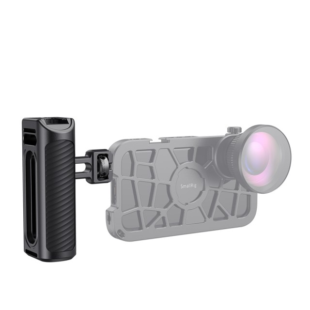 Der HSS2424 SmallRig Aluminium-Seitengriff für Smartphone-Käfige wurde für SmallRig Telefonkäfige entwickelt und verbessert den Griffkomfort für einen dauerhaften und stabilen Telefongriff. Er ist kompatibel mit SmallRig Pro Handy-Käfigen wie 2775, 2776, etc. und universellen SmallRig-Käfigen wie CPU2391B, 2791, etc. Der eingebaute Schraubenschlüssel kann zum Einstellen der Griffhöhe und zum Festziehen der Feststellschraube verwendet werden. Es verfügt über drei Standardgewindebohrungen (1/4-20) und eine kalte Halterung an der Oberseite zur Befestigung von Zubehör wie Mikrofonen oder LED-Leuchten. Der Handgriff ist mit der SmallRig PAC2456 Handschlaufe kompatibel, die das Schießen aus der Hand noch sicherer und stabiler macht. Er wiegt nur 224 g und hat ein Aluminiumgehäuse mit einer rutschfesten Silikonbeschichtung, die auch bei längerem Gebrauch einen angenehmen Griff gewährleistet.