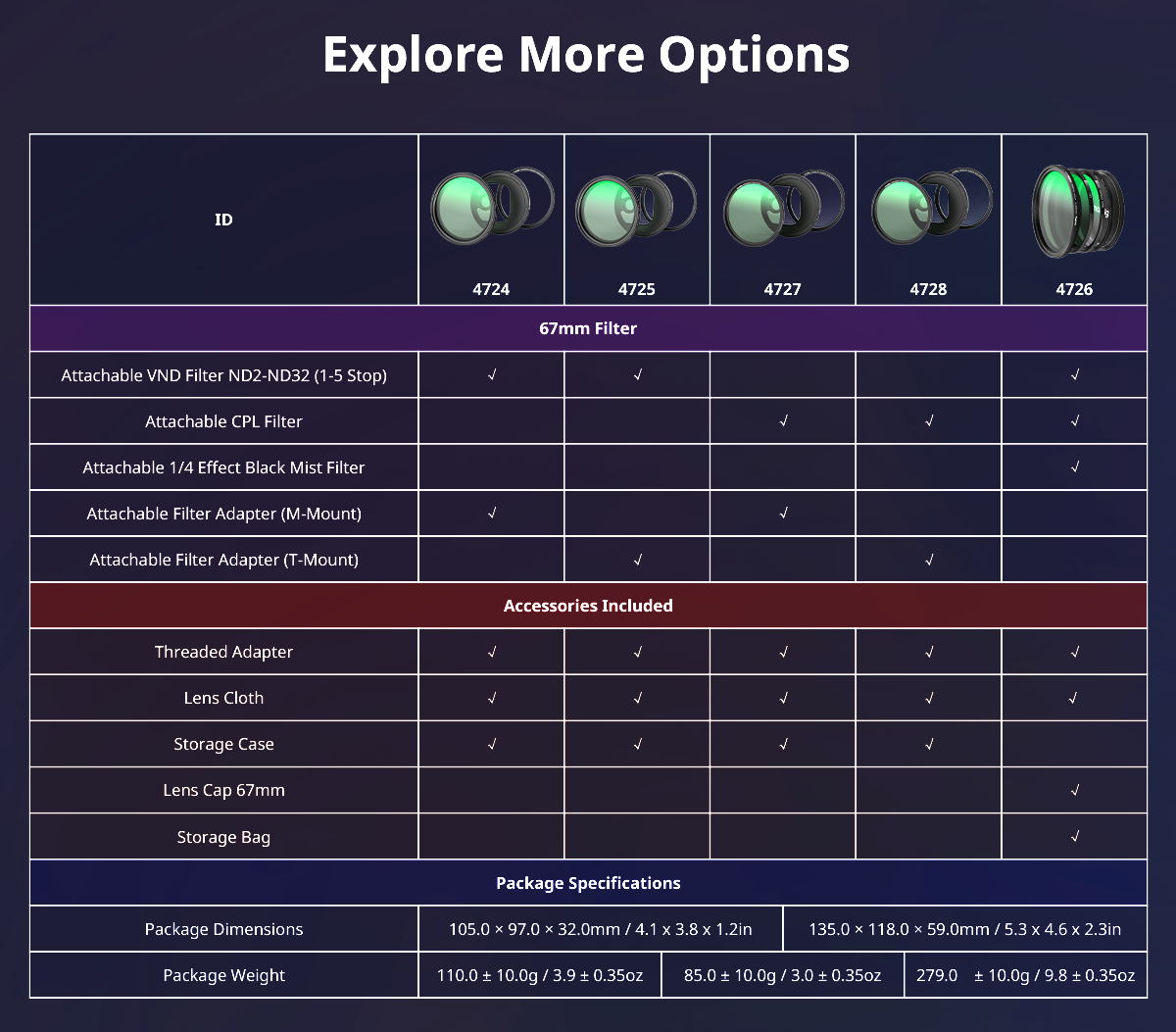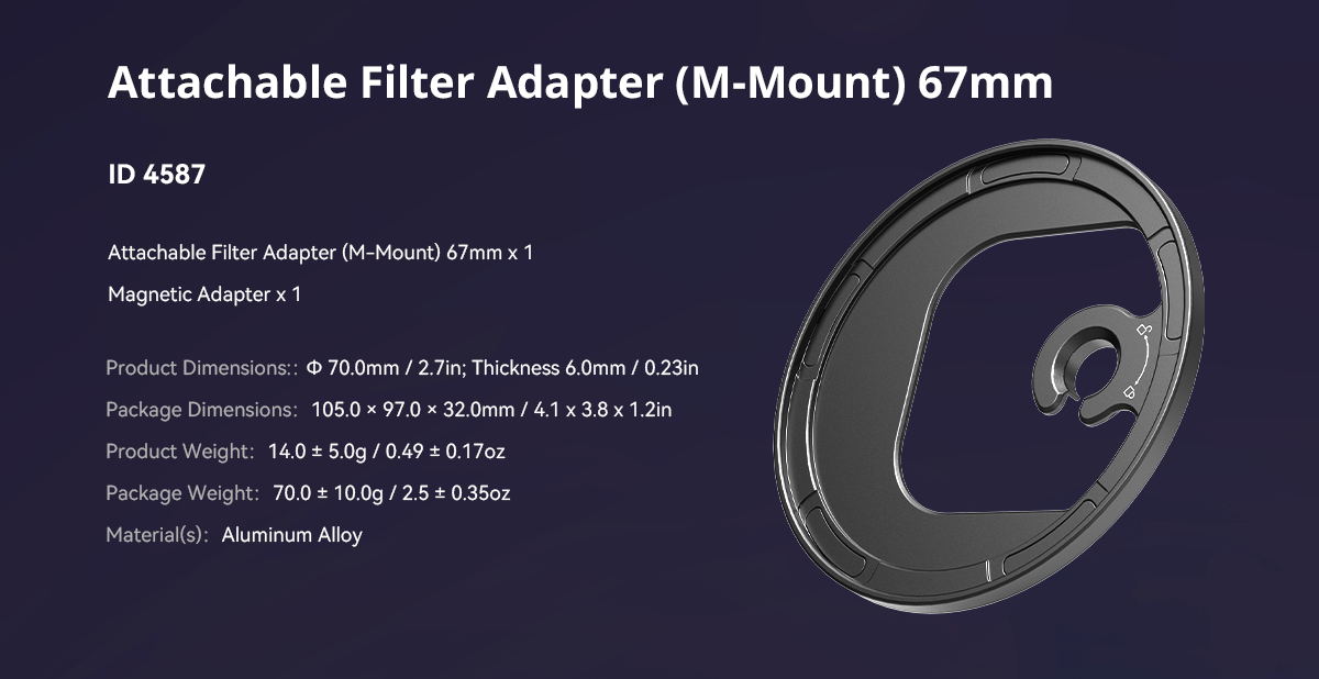 5. Wird mit einem magnetischen Adapterring geliefert, der universelle Kompatibilität für die Befestigung von Filtern mit 67-mm-Gewinde ermöglicht.