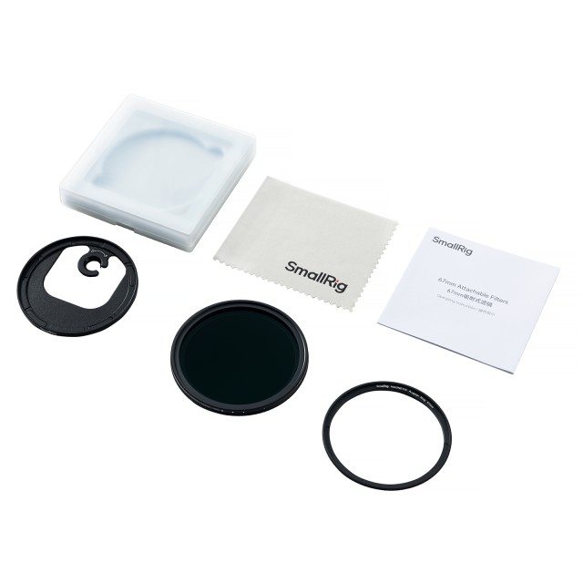SmallRig Aufsteckbares VND-Filter-Kit ND2-ND32 (1-5 Stop) mit M-Mount-Filteradapter 67mm 4724 Durch den VND-Filter mit einstellbarer Belichtungsreduzierung können Anwender ihn flexibel bei Videoaufnahmen einsetzen, um vernünftige Belichtungsparameter einzustellen und professionelleres Videomaterial zu liefern. Das mehrfach vergütete optische Glas bietet eine zuverlässige optische Qualität und gewährleistet, dass die aufgenommenen Bilder frei von Vignettierung sind. Das magnetische Befestigungssystem ermöglicht ein schnelles und effizientes Anbringen und Auswechseln der Filter. Das Set enthält einen M-Mount-Adapterring für die direkte Integration mit der M-Mount-Rückwandplatine von iPhone-Käfigen. Mit dem Adapterring mit Gewinde kann der Filter auf ein 67-mm-Kameraobjektiv montiert werden, was eine bequeme magnetische Filterinstallation für Kameraobjektive ermöglicht.
