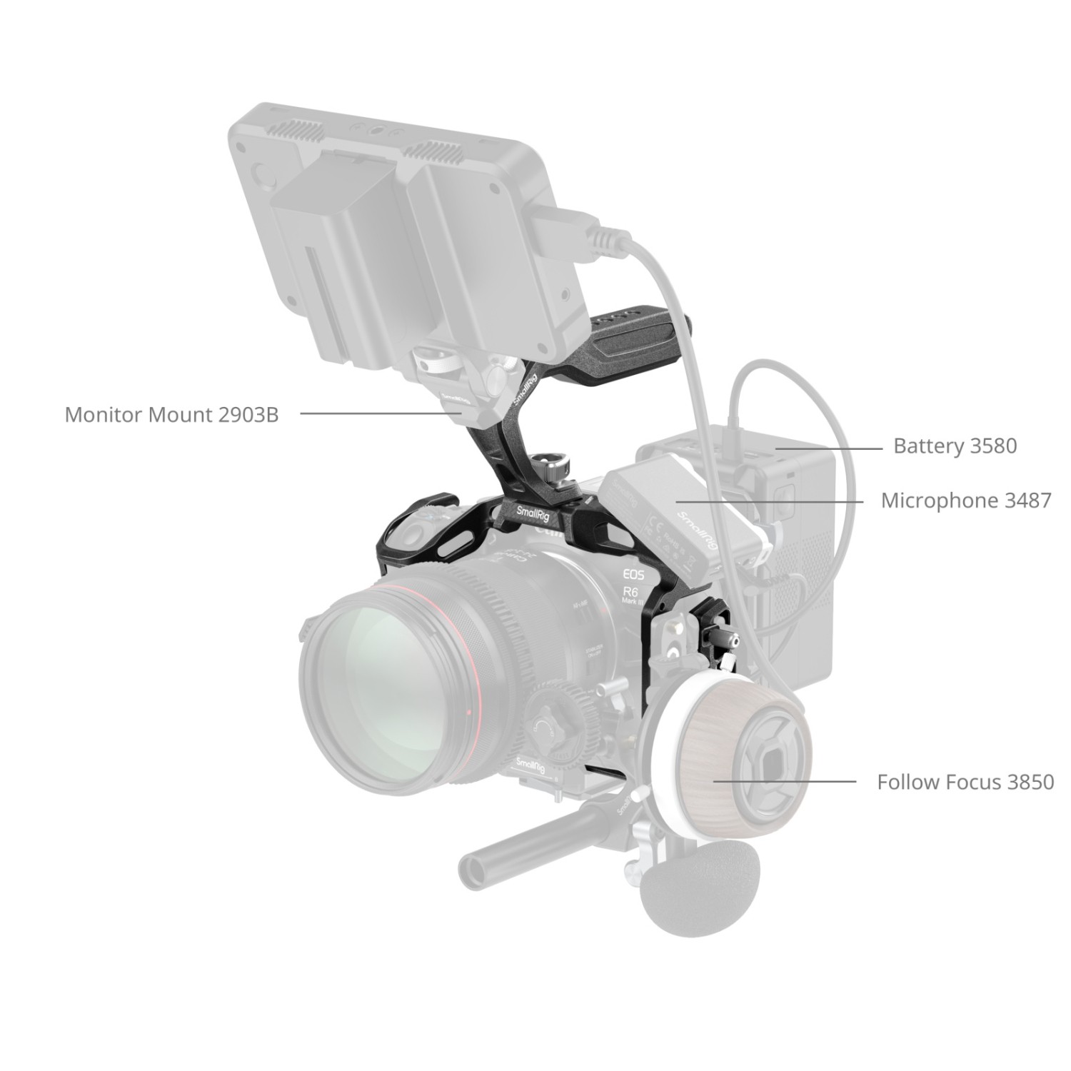 Das SmallRig „Black Mamba” Cage Kit für Canon EOS R6 Mark III / R6 Mark II 5960 wurde entwickelt, um die Handhabung zu verbessern, die Tragbarkeit zu erhöhen und die Erweiterung mit Zubehör zu unterstützen. Das umfassende Kit enthält einen Kamerakäfig, eine HDMI- und USB-C-Kabelklemme sowie den charakteristischen „Black Mamba”-Top-Griff, die alle das elegante und aggressive Black Mamba-Design verkörpern, das Ästhetik mit praktischer Funktionalität für Fotografen verbindet.