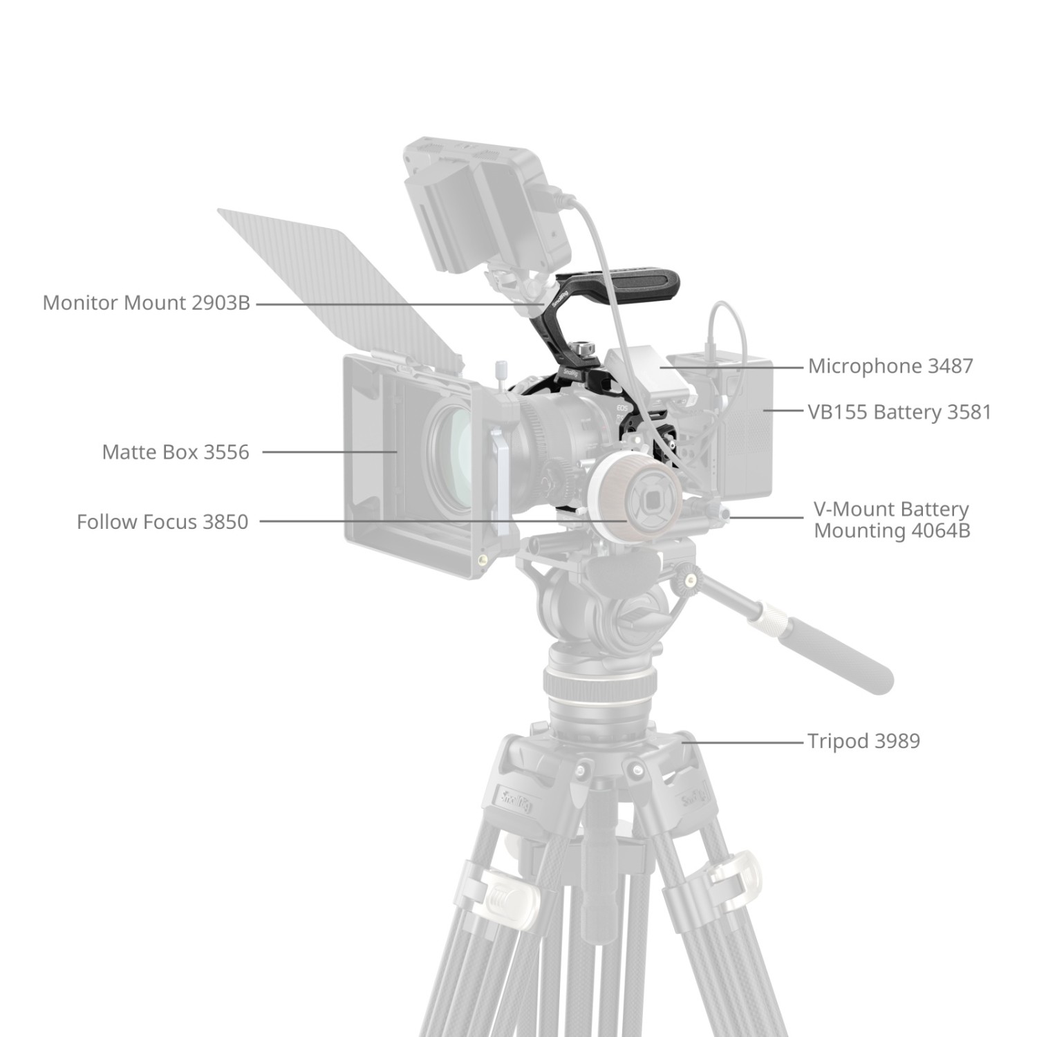 Der ergonomische Griff oben bietet einen bequemen Halt, sodass Aufnahmen aus niedrigen Winkeln und das Tragen mühelos möglich sind. Der Cage verfügt über mehrere Befestigungspunkte, darunter 1/4"-20-Gewindebohrungen, 1/4"-20-Positionierungsbohrungen, 3/8"-16-Gewindebohrungen, ARRI 3/8"-16-Positionierungsbohrungen, eine Kaltschuhhalterung, eine Arca-kompatible Schnittstelle, eine QD-Buchse und Riemenschlitze. Dank dieser vielseitigen Optionen können Benutzer Monitore, Mikrofone, Stative, Follow-Focus-Systeme, Griffe und anderes Zubehör anbringen, wodurch eine Vielzahl von Anforderungen bei der Videoerstellung erfüllt werden.