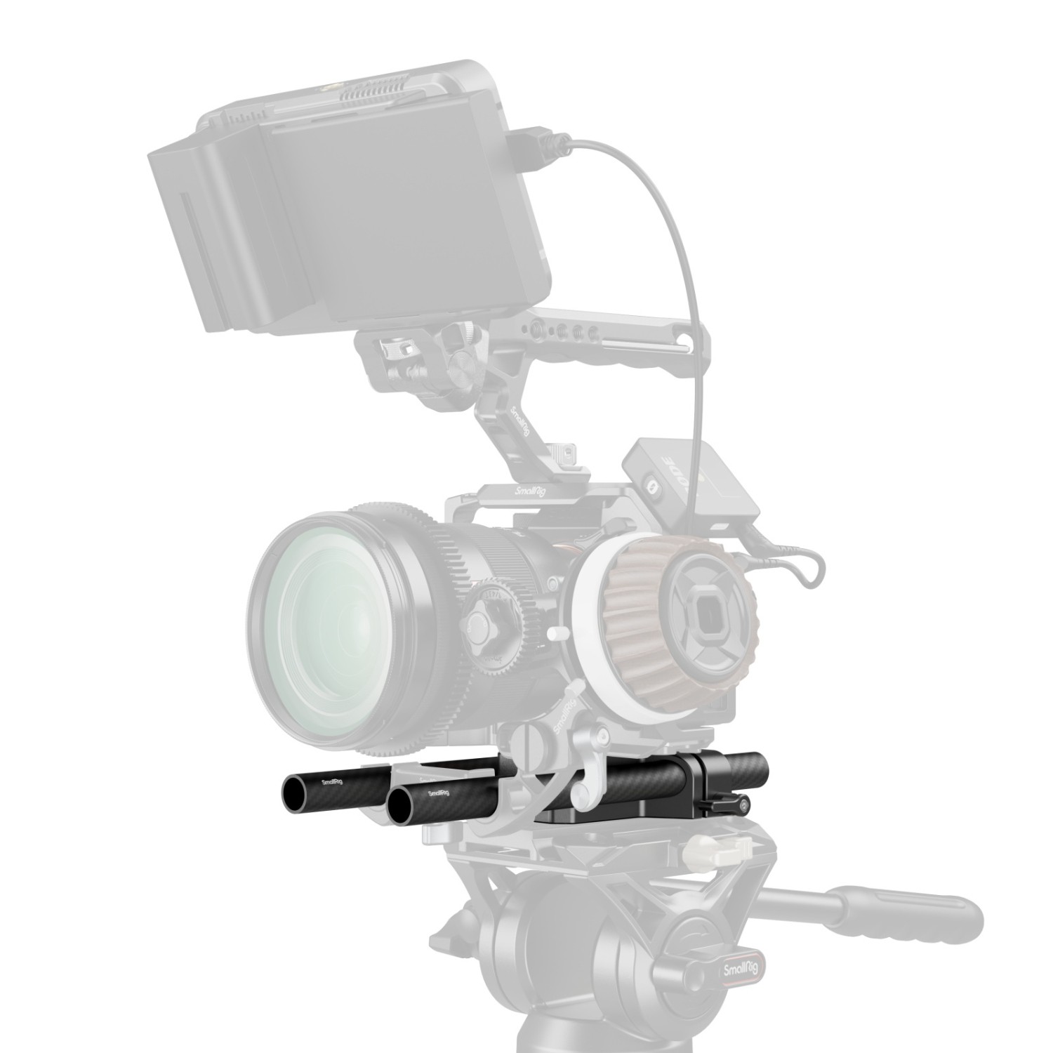 Die SmallRig-Bodenmontageplatte mit doppelter 15-mm-Stangenklemme 5609 bietet eine hohe Kompatibilität mit gängigen Fotoausrüstungen und Käfigen. Ihr kompaktes Schienendesign gewährleistet sowohl Stabilität als auch einen leichten Betrieb. Die mitgelieferten 15-mm-Doppelstangen aus Kohlefaser (20 cm Länge) sind sowohl tragbar als auch langlebig und ermöglichen eine vielseitige Erweiterung mit Follow-Focus-Einheiten (ID 5163, 4757), Fokusmotoren (ID 4297) und mehr. Die Basis verfügt über mehrere 1/4"-20- und 3/8"-16-Gewindebohrungen, die die Kompatibilität mit einer Vielzahl von Schnellwechselplatten gewährleisten.