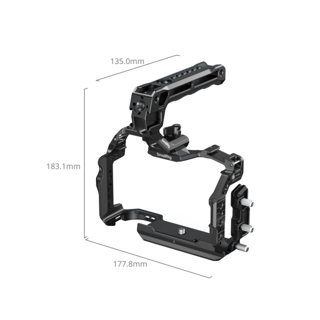 Das SmallRig Cage Basic Kit für Canon EOS R6 Mark III / R6 Mark II 5955 wurde entwickelt, um die Stabilität bei Handaufnahmen, die Tragbarkeit und die Erweiterungsmöglichkeiten für Zubehör zu verbessern. Das Kit enthält einen Cage, eine USB-C- und HDMI-Kabelklemme sowie einen oberen Griff.