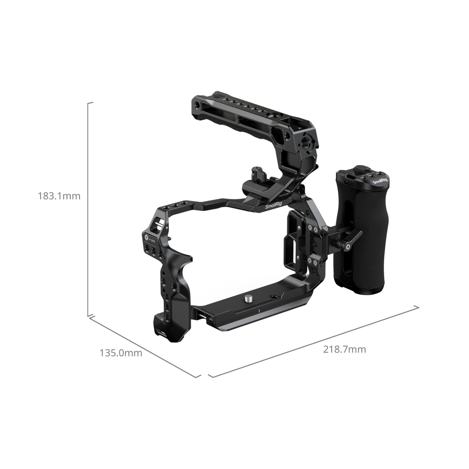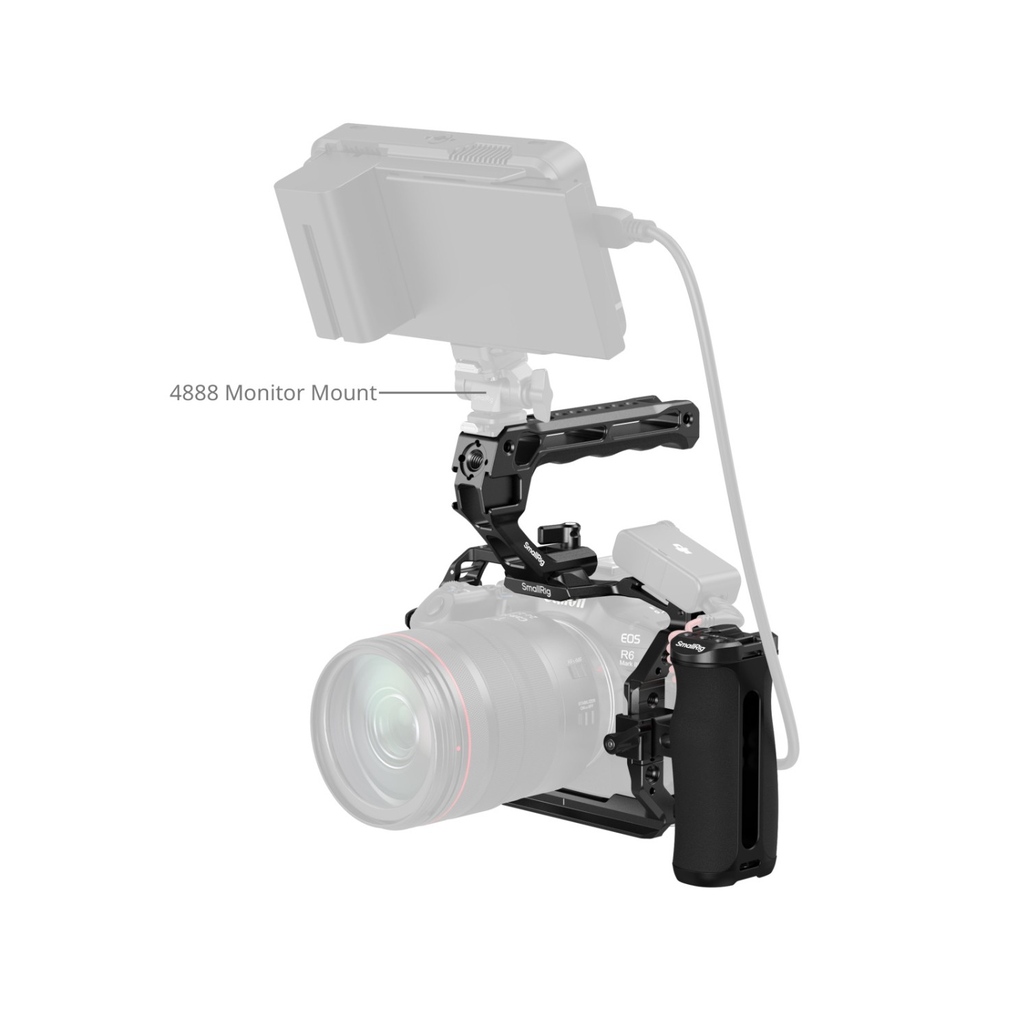 Das SmallRig Cage Basic Kit für Canon EOS R6 Mark III / R6 Mark II (Advanced Edition) 5956 wurde entwickelt, um die Belastung der Arme zu reduzieren und die Stabilität bei Handaufnahmen zu erhöhen, während es gleichzeitig eine große Auswahl an Zubehörhalterungen bietet. Es umfasst einen Käfig, eine HDMI-Kabelklemme, einen oberen Griff und einen seitlichen Griff.