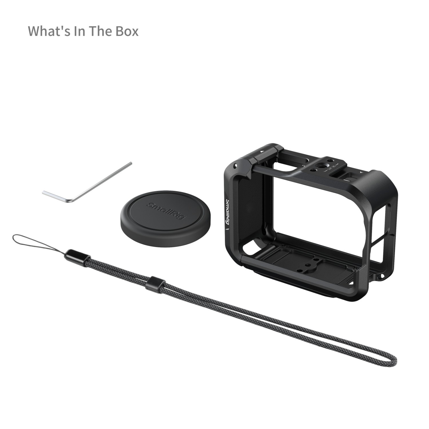 Der SmallRig Cage für DJI Osmo Action 6 (Advanced Edition) 5887 wurde speziell für die DJI Osmo Action 6 entwickelt. Dieser Metallkäfig mit vollständiger Abdeckung bietet robusten Aufprallschutz und gewährleistet gleichzeitig einen ungehinderten Zugang zu allen Tasten und Anschlüssen. Mehrere Erweiterungsinterfaces ermöglichen die nahtlose Befestigung von Zubehör und verbessern so die Effizienz beim Filmen. Das Kit enthält den Käfig, eine Handschlaufe, eine Silikon-Objektivabdeckung und einen Inbusschlüssel.