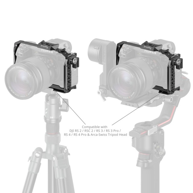 SmallRig Cage für FUJIFILM X-H2 / X-H2S 3934B wurde entwickelt, um die Kamera zu schützen und gleichzeitig eine Vielzahl von Erweiterungsschnittstellen zu bieten. Der Käfig befestigt die Kamera sicher mit einer 1/4"-20 Schraube an der Unterseite und zwei seitlichen Positionierungsblöcken, zusammen mit mehreren eingebauten Anti-Rutsch-Silikonpads, um Kratzer zu vermeiden. Außerdem behindert er nicht den Zugang zu den Schnittstellen der Kamera, dem LCD-Bildschirm oder dem Batteriefach.