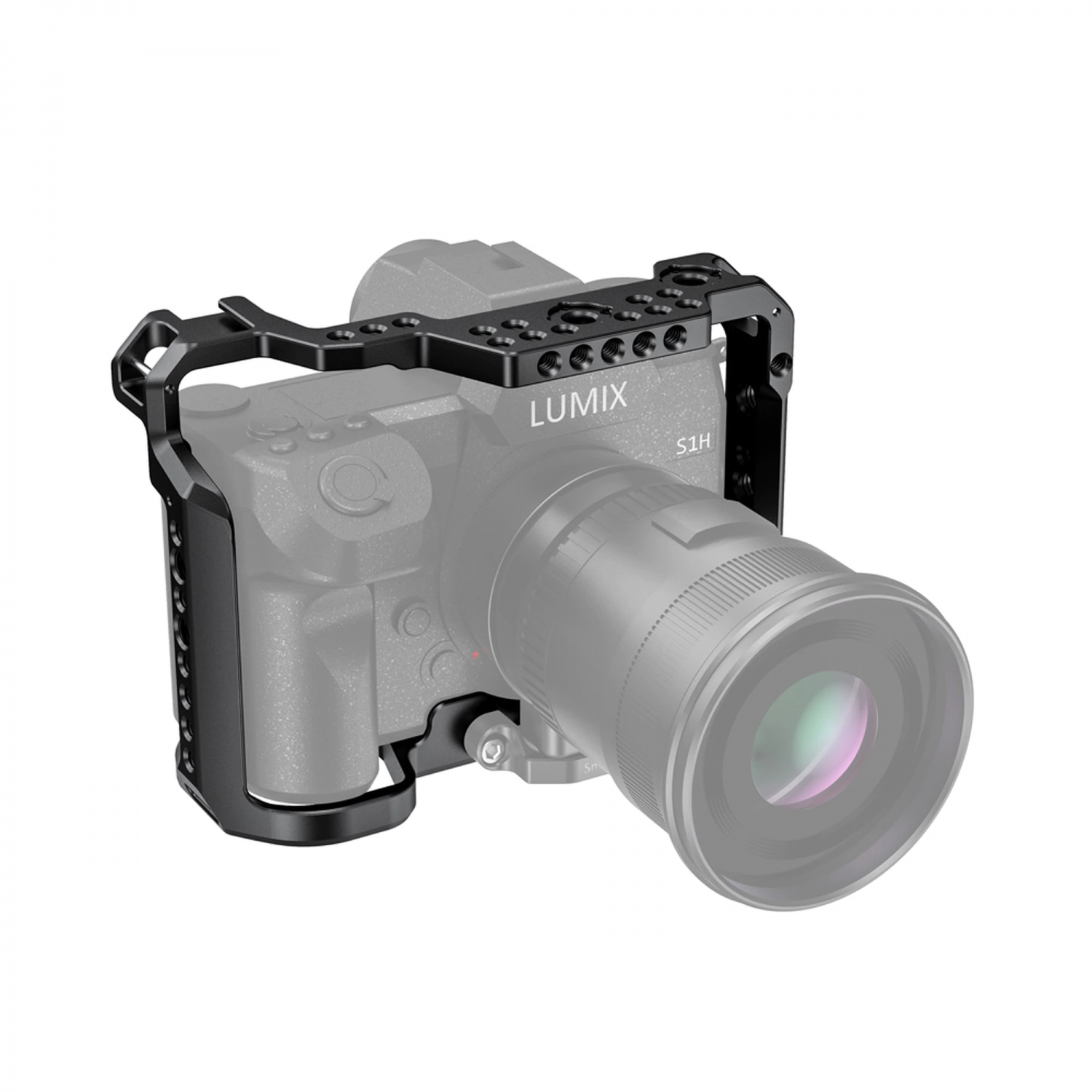 Der SmallRig Käfig für die Panasonic S1H Kamera CCP2488 wurde zum Schutz und zur Befestigung von Zubehör für die S1H entwickelt. Der Käfig wird mit 1/4"-20 und m2,5 Schrauben an der Unterseite der Kamera befestigt, um ein Verdrehen zu verhindern.