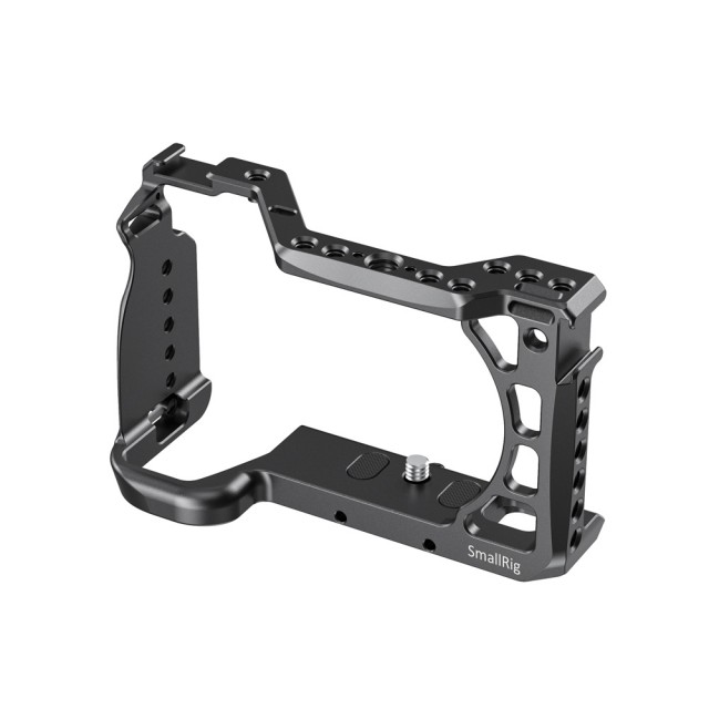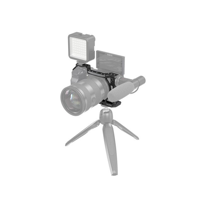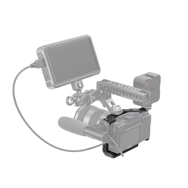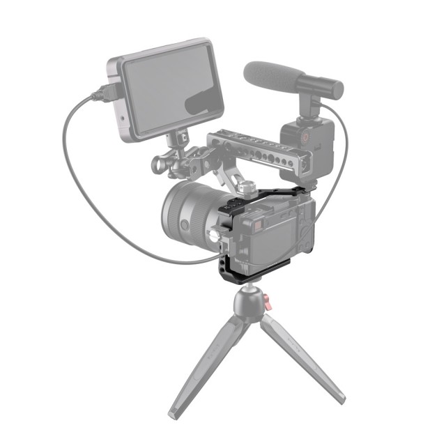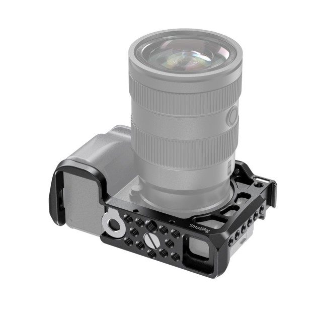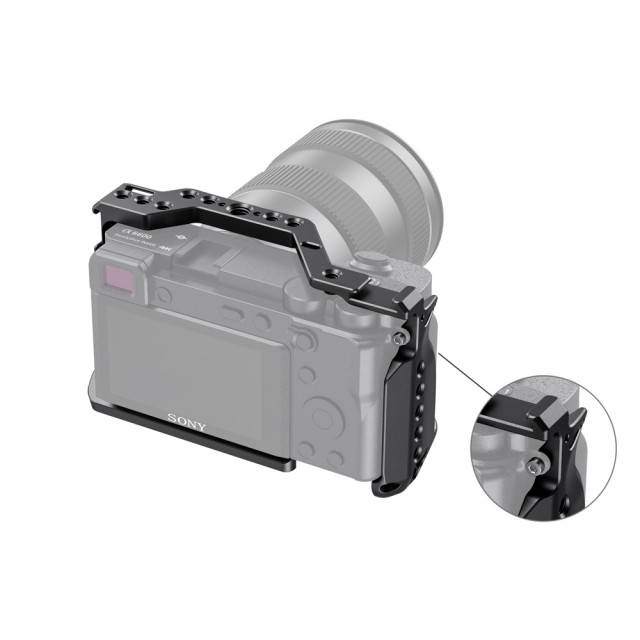 Der SmallRig-Käfig für die Sony A6600 CCS2493 bietet Schutz und Befestigungsgewinde für Zubehör wie Monitore, Mikrofone, Leuchten und Griffe. Der Käfig wird mit einer 1/4"-20 Bodenschraube und einer M2,5-Schraube an der Unterseite der Kamera befestigt, um ein Verdrehen des Käfigs zu verhindern. Sie ist mit mehreren 1/4"-20-, 3/8"-16- und Arri 3/8"-16-Zubehörlöchern ausgestattet, um die Montage des oberen Griffs 2165, der Monitorhalterung 2294 und der Monitorhalterung 2348 zu ermöglichen. Integriert zwei kalte Steckdosenhalterungen, eine oben und eine links für Mikrofon und Licht. Der Käfig ist außerdem an beiden Seiten mit Löchern für einen Tragegurt ausgestattet. Das Unterteil wird mit einem Schlitzschraubendreher für eine schnelle Montage geliefert. Die optionale HDMI-Kabelklemme 1693 und die Objektivadapterhalterung 1787 sind bei Bedarf separat erhältlich.