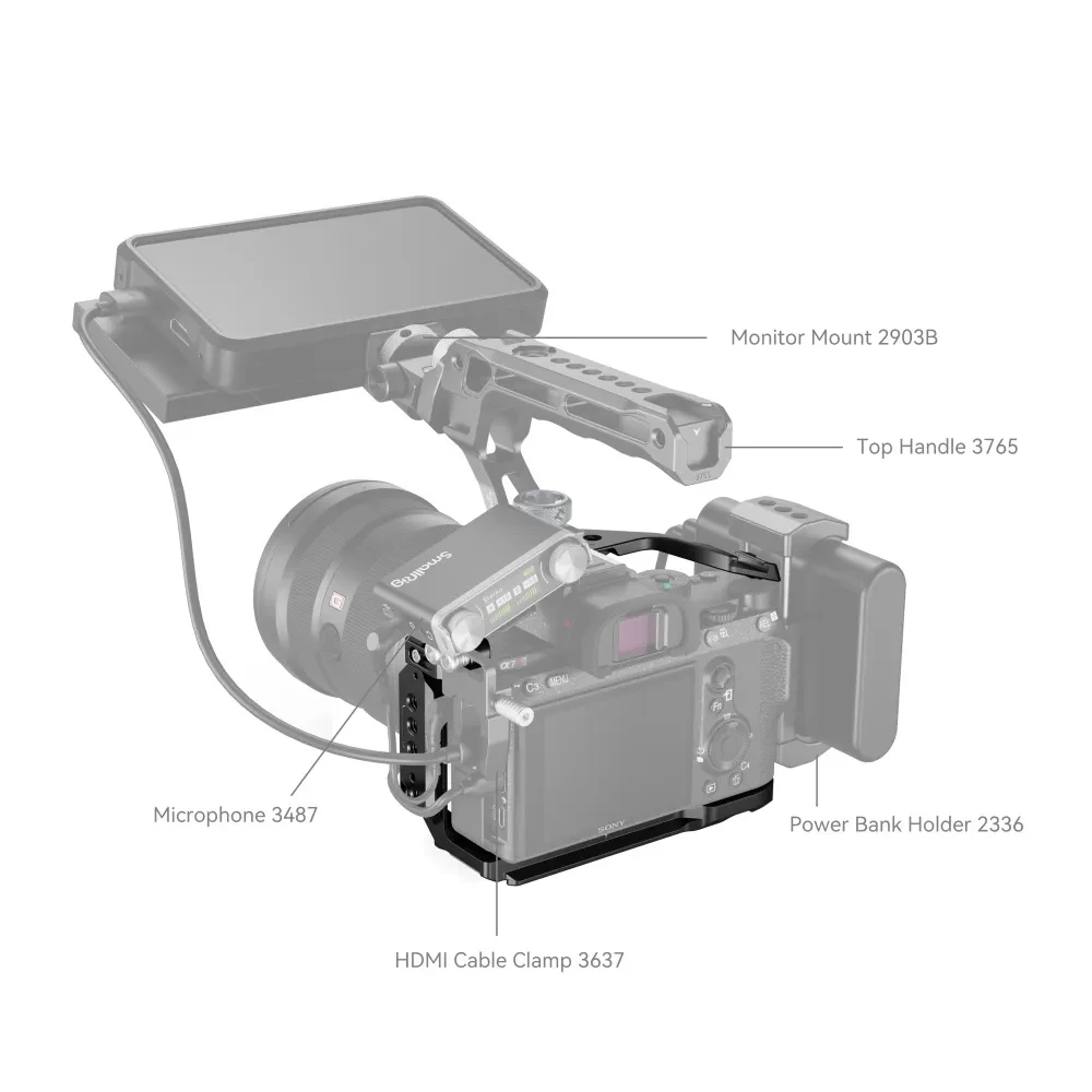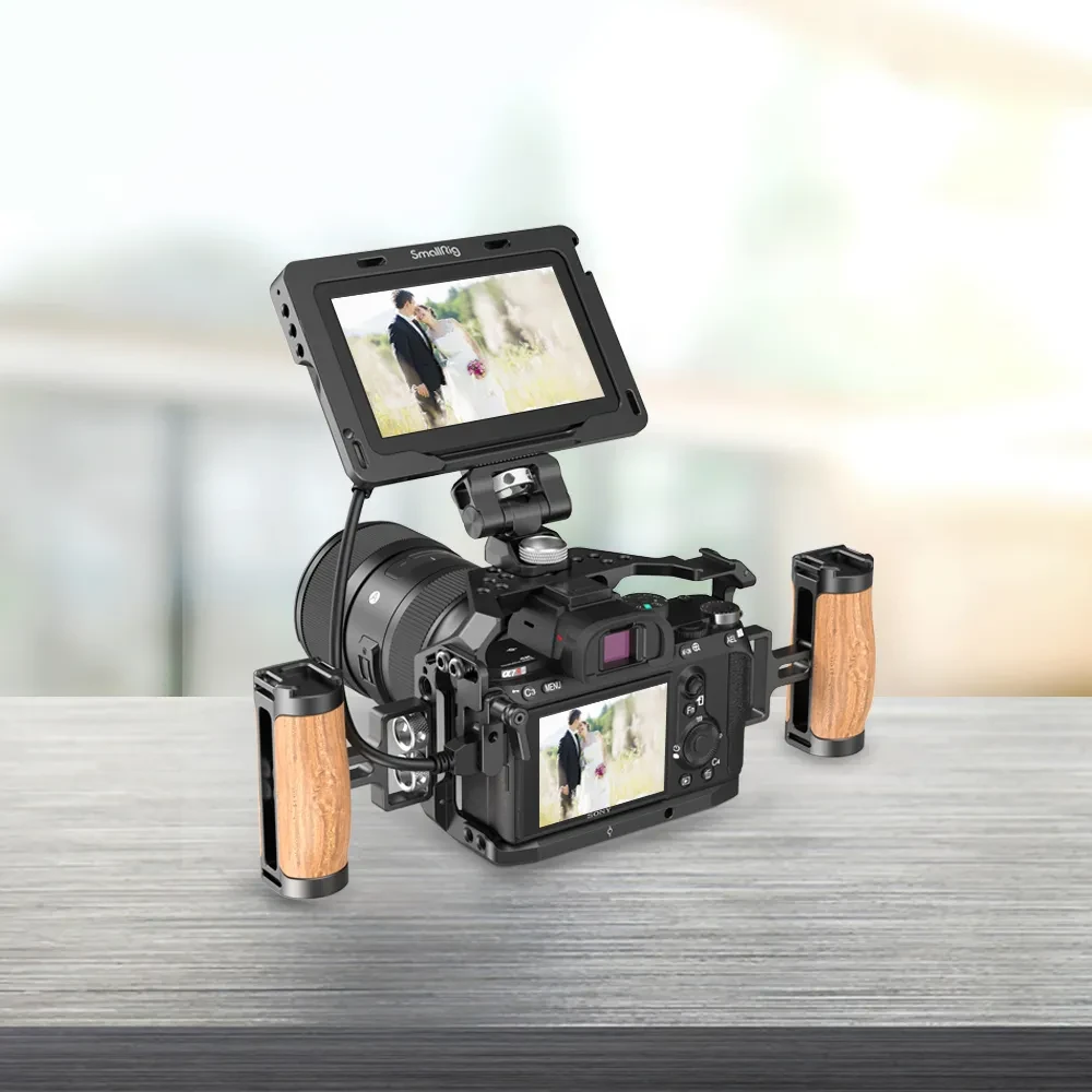 Der SmallRig A7RIII 2087 Käfig wurde exklusiv für die Sony A7RIII/A7M3/A7III entwickelt. Er bietet eine Vielzahl zusätzlicher Befestigungsmöglichkeiten und ermöglicht es, das maximale Potenzial der Kamera je nach den Bedürfnissen des Kameramanns während der Aufnahme zu entfalten. Es könnte ein Mikrofon, einen Magic Arm 1497/1498/2070 und einen Monitor anschließen. Die Arri-Positionierungspunkte auf der Oberseite sind mit den Arri-Positionierungsstiften kompatibel, ebenso wie der Magic Arm mit dem Magic Arm 2026 Anti-Rotationsadapter für einen Monitor oder einen drahtlosen Bildsender.