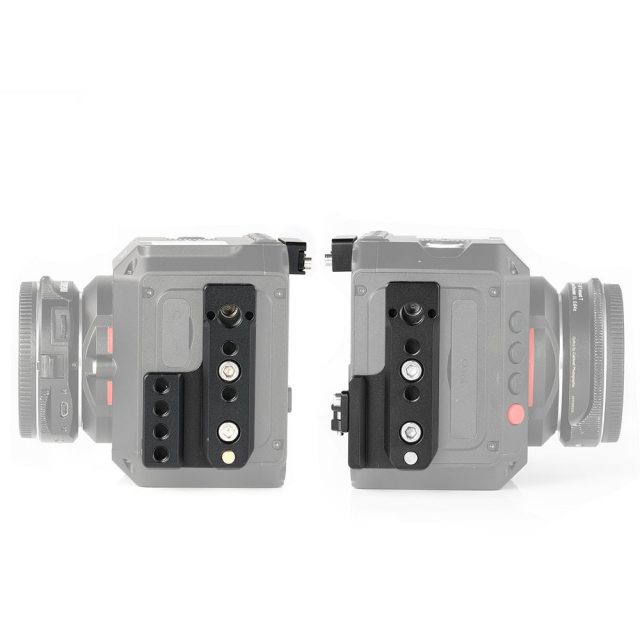 Der Zweck des Käfigs ist es, Ihr Setup zu erleichtern, so dass Sie die Seiten- oder Bodenplatte unabhängig von Ihren Bedürfnissen verwenden können. Der Käfig verfügt über mehrere Bohrungen mit 1/4"-20, 3/8"-16 und arri 3/8"-Gewinde zur Befestigung von Zubehör wie Magic Arm, Cold Foot und Griffen. Jede Seitenplatte ist mit einer Nato-Schiene ausgestattet, an der ein 2071 Magic Arm für den Monitor und ein 2187 Nato-Griff für die Schnellmontage befestigt werden können. Die Bodenplatte hat Gummipuffer auf der Oberseite, um ein Verkratzen des Kamerakäfigs zu verhindern, und kann in die Arca Swiss Platte integriert werden, so dass die Z cam E2 in Sekundenschnelle direkt am Arca-Stativ befestigt werden kann