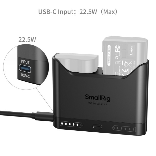 Jeder Ladekanal verfügt über fünf LED-Anzeigen, die den Ladezustand in 20-Prozent-Schritten anzeigen, auch ohne externe Stromversorgung. Eine rote Warnleuchte leuchtet auf, wenn der Ladezustand der Batterie kritisch niedrig ist. Darüber hinaus verfügt das Ladegerät über einen universellen USB-C-Eingangsanschluss und wird mit einem Schnellladekabel geliefert, sodass es mit Wandadaptern, Autoladegeräten und Powerbanks kompatibel ist und vielseitige Lademöglichkeiten bietet.