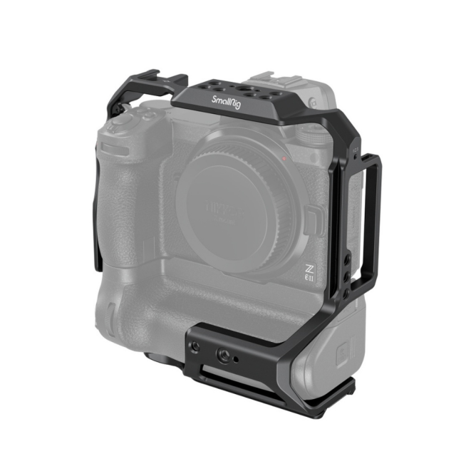 Der SmallRig Kamerakäfig für Nikon Z 6II/Z 7II mit MB-N11 Batteriegriff 3866 bietet Schutz und Befestigungspunkte. Die Kamera wird mit einer 1/4''-20-Schraube an der Unterseite und einer M2,5-Schraube an beiden Seiten befestigt. Der Käfig ist mit Silikonpolstern ausgestattet, um Kratzer zu vermeiden und den Zugang zu den Tasten, Kartensteckplätzen, dem Akkufach und dem Klappbildschirm zu gewährleisten. Er verfügt über 1/4"-20-Gewindebohrungen und 3/8"16-Gewindebohrungen für den oberen Handgriff 2165, 1638, den seitlichen Handgriff 2093, 2425, die Monitorhalterung 2903, 2904, den Magic Arm 2115; zwei Kühlschuhe für Mikrofone und LED-Leuchten; untere und linke Arca-Swiss-Schnellwechselplatte für Stativ und DJI RS 2/RSC 2 Stabilisator für horizontale und vertikale Aufnahmen. Die vorderen 1/4''-20-Gewindebohrungen ermöglichen die Befestigung der Dual 15mm Rod Clamp 1943 für Zubehör wie Mattebox und Objektivhalterung; die vorderen 1/4''-20-Gewindebohrungen unterstützen die 12mm/15mm Single Rod Clamp 3276 für die Follow-Focus-Lösung. Darüber hinaus ist ein Schlitzschraubendreher für eine einfache Montage und Demontage enthalten.