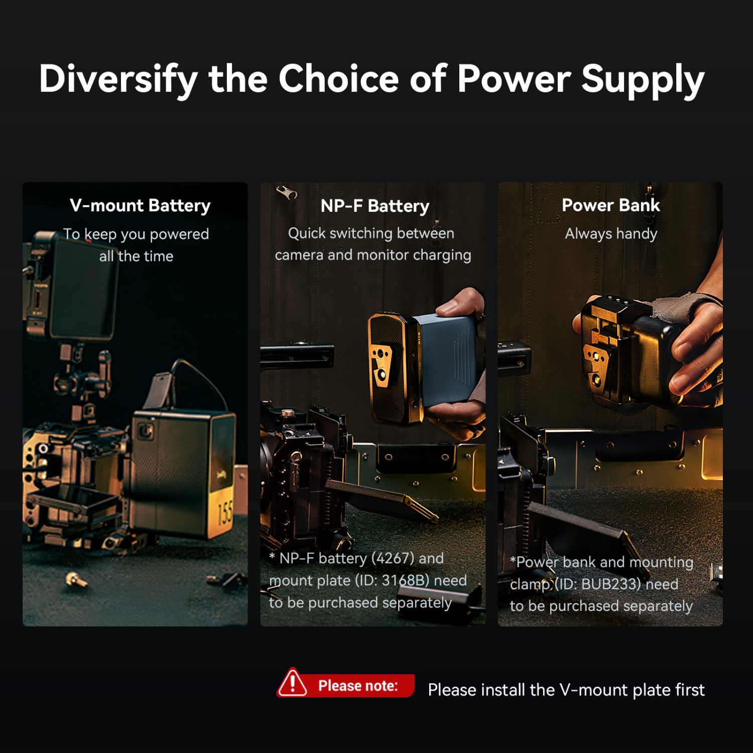 1. Kompakte, leichte All-in-One-Befestigungslösung für V-Mount-Akkus