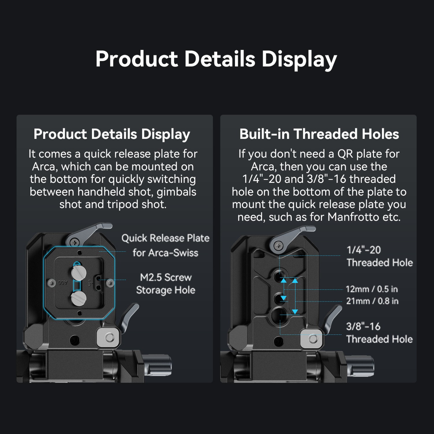 4. Arca-Swiss-Schnellwechselplatte für schnellen Wechsel zwischen Handaufnahmen und Stativaufnahmen