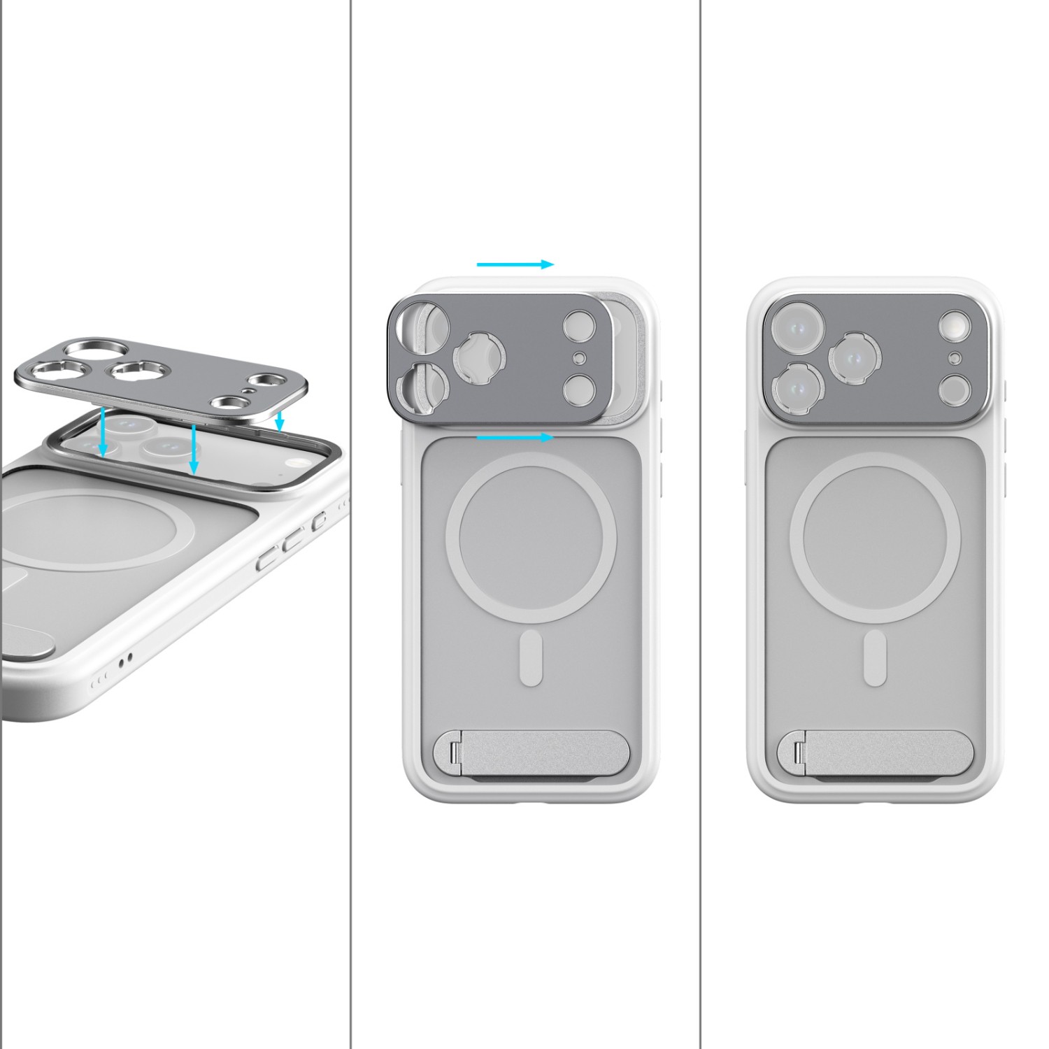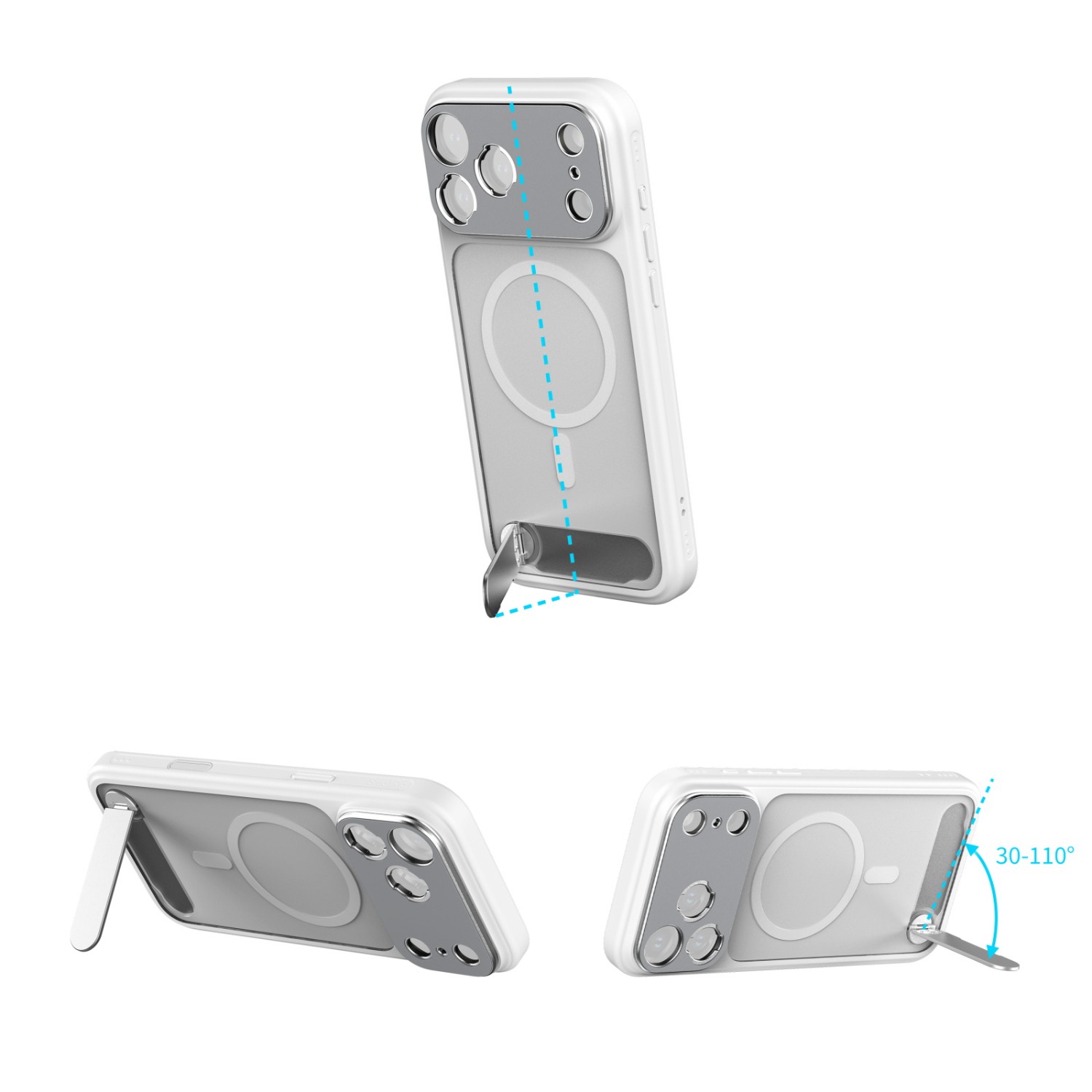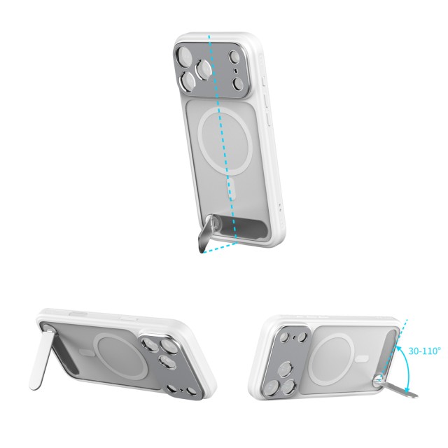 Die Hülle wurde für optimale Funktionalität entwickelt und ist präzise auf die Kamerasteuertaste des iPhones abgestimmt, sodass sie ein sensibles taktiles Feedback bietet und gleichzeitig umfassenden Schutz gewährleistet. Der integrierte Multiwinkel-Ständer (30°-110°) ermöglicht mühelose Übergänge zwischen Hoch- und Querformat. Eingebaute MagSafe-Magnete gewährleisten universelle Kompatibilität mit MagSafe-Zubehör, während eine seitliche Öse die Befestigung von Handgelenk- oder Schultergurten für bequemen Transport unterwegs erleichtert.
