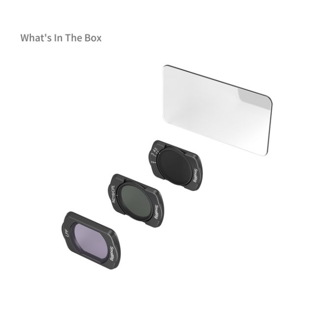 Das SmallRig Filter Kit für DJI Osmo Pocket 3 bietet eine bequeme und effiziente Lösung für verschiedene Lichtverhältnisse. Dank der magnetischen Schnappmontage ist die Einrichtung schnell und einfach. Das kompakte, leichte Design sorgt dafür, dass die Rotation des Gimbals und die Lagerung nicht behindert werden. Das Kit enthält einen VND2-5-Filter, einen ND16/CPL-Filter, einen LPF-Filter und eine Schutzfolie für den Bildschirm und bietet damit umfassende Unterstützung für alle Ihre Filmbedürfnisse.