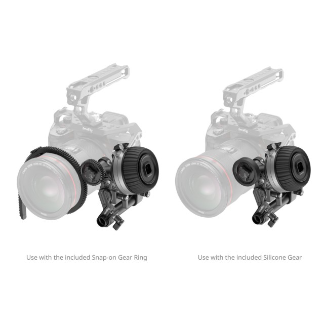 Im Lieferumfang enthalten ist ein Silikonzahnrad (ID 3852), das einen reibungsgesteuerten Fokus für spiegellose Objektive ermöglicht, sowie ein kompaktes Silikonhandrad für einen rutschfesten Griff und eine fein abgestimmte Steuerung. Dieser Follow-Fokus wird mit einem Φ15-mm-Stab und einer einzelnen Stabklemme (ID 1549) links oder oben am Objektiv befestigt und bietet einstellbare Winkel für flexible Konfigurationen. Das modulare Design ermöglicht eine schnelle und präzise Einrichtung für Hand- und Stativaufnahmen sowie verschiedene Aufnahmesituationen.