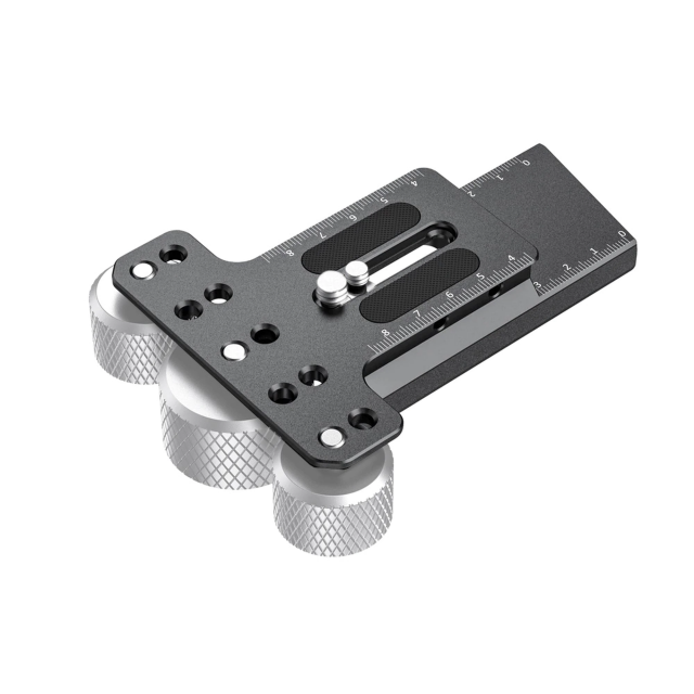 (200g) sind separat erhältlich. Die Oberseite der Platte ist mit Gummipuffern versehen, um die Kamera vor Kratzern zu schützen. Außerdem verfügt die Platte über zwei m5-Gewindebohrungen an der Seite, um die Original-Schiebebasis des Gimbals zu befestigen, und eine Millimeterskala, um die Kameraposition leicht zu markieren.Designer:Clara Oswald