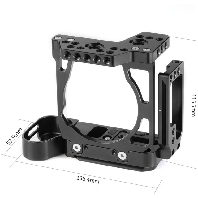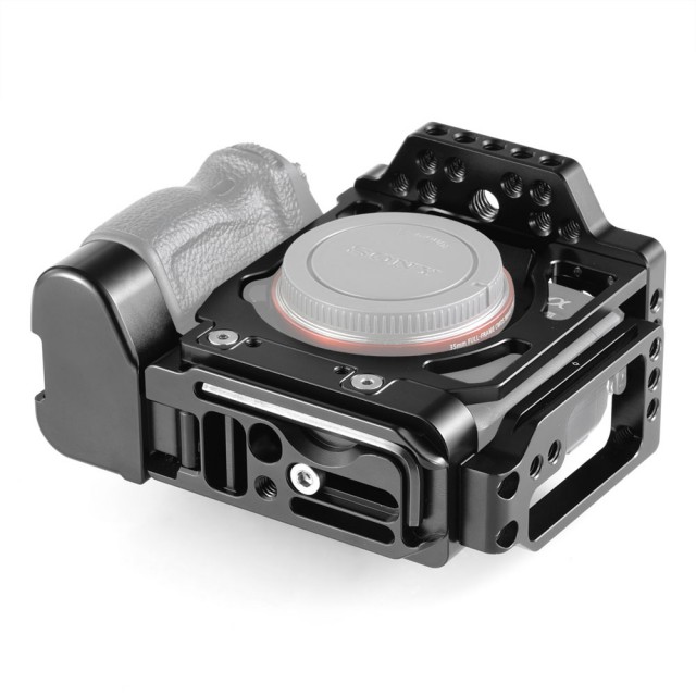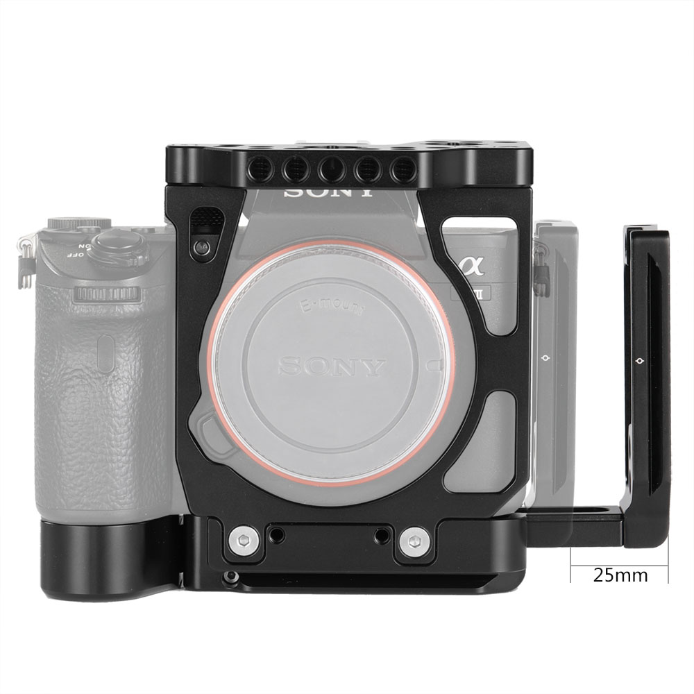 Der SmallRig Half Cage mit Arca L-Bracket für Sony A7III A7RIII 2236 (CCS2236) ist ein innovatives Produkt, das die Eigenschaften eines Käfigs und eines L-Brackets kombiniert, um die Bedürfnisse von Hybrid-Fotografen zu erfüllen. Sowohl die Seiten- als auch die Bodenplatte entsprechen dem Arca-Swiss-Standard und ermöglichen einen schnellen Wechsel zwischen horizontaler und vertikaler Aufnahmeausrichtung. Die Grundplatte ist 20 mm hoch und liegt perfekt am Kameragehäuse an, wodurch ein bequemer Griff für Aufnahmen aus der Hand gewährleistet ist. Es verfügt über einen Schnellverschluss um die Batterieabdeckung herum, so dass der Batterieschalter nicht verdeckt wird. Die Seitenplatte kann nach links um 25 mm verlängert werden, wenn Sie mehr Platz zum Befestigen oder Lösen des Kabels benötigen. Bringen Sie die SmallRig HDMI-Kabelklemme 2259 an, wenn Sie das HDMI-Kabel und den Anschluss schützen möchten. An der Oberseite befinden sich mehrere 1/4''-20- und 3/8''-16-Bohrungen sowie Arri-Positionierungslöcher, an denen Sie den oberen Handgriff SmallRig 2165 und den SmallRig Ball Head Magic Arm 2115 für Videoaufnahmen befestigen können.