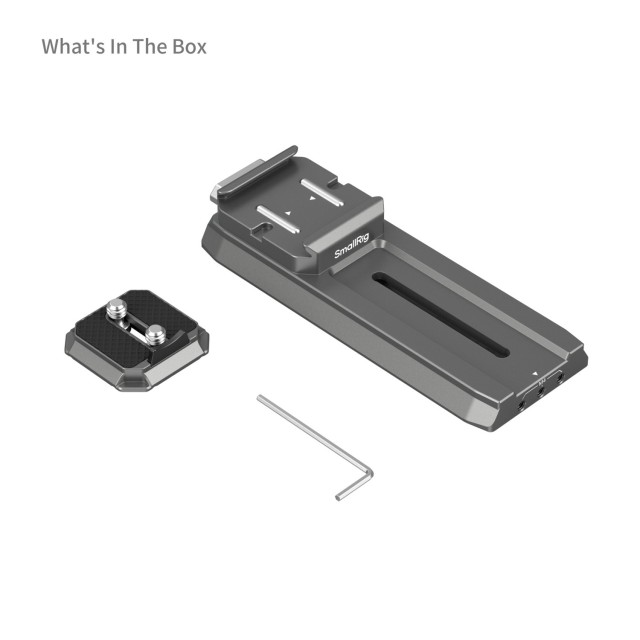SmallRig HawkLock H38 Manfrotto Schnellwechselplatte für DJI-Stabilisatoren 4638 wurde speziell für DJI RS 2 / RSC 2 / RS3 / RS 3 Pro / RS 4 / RS 4 Pro Stabilisatoren entwickelt und ermöglicht einen schnellen Wechsel zwischen Stativ- und Stabilisator-Setup und optimiert so die Filmzeit für den Benutzer. Die Schnellwechselplatte entspricht dem Manfrotto-Standard und verfügt über ein werkzeugloses Schnellwechseldesign. Das Innere der Arca-Swiss-Schnellwechselplatte ist mit einem einstellbaren Anti-Rutsch-Design ausgestattet. Sie erleichtert die schnelle Montage der Käfige (ID 4481) und verfügt über eine Zahnschiene an der Unterseite, die eine präzise Verstellung von vorne nach hinten ermöglicht.
