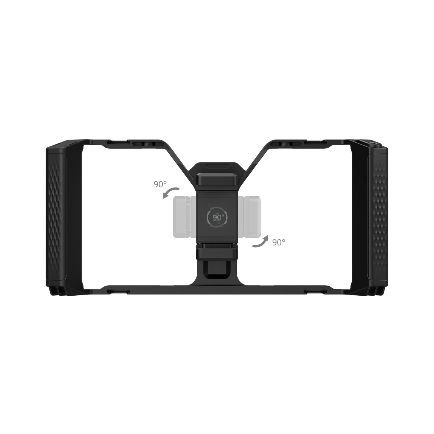 Das ergonomische Design sorgt für einen bequemen und stabilen Griff und ermöglicht eine schnelle Befestigung des Telefons. Mehrere 1/4"-20-Gewindebohrungen und Kaltlichthalterungen erleichtern das Anbringen von verschiedenem Zubehör wie externen Griffen, Stativen, Mikrofonen und LED-Leuchten und verbessern so die Produktionsqualität.