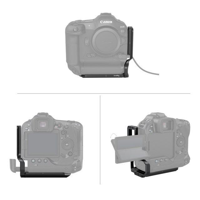 SmallRig L-Bracket für Canon EOS R3 3628 ist für den schnellen Wechsel zwischen horizontalen und vertikalen Aufnahmen konzipiert. Er wird mit einer 1/4"-20-Schraube und einer Anti-Dreh-Schraube an der Unterseite der Kamera befestigt, ist mit einem Silikonpolster ausgestattet, um Kratzer und Durchbiegung zu verhindern, und kann in eine Arca-kompatible Grundplatte (separat zu verwenden) und eine Seitenplatte zerlegt werden, beide mit Objektiv-Mittelmarkierung. Der L-Bracket blockiert keine Anschlüsse und Tasten und ermöglicht sogar das Kippen des LCD-Bildschirms bis zu einem gewissen Grad. Sie können den Akku austauschen, ohne den L-Bracket entfernen zu müssen, und ist außerdem RS-80N3-kompatibel. Die ausziehbare Seitenplatte bietet Platz für HDMI- und USB-Kabel; die Grundplatte mit Befestigungspunkten wie 1/4"-20, 3/8"-16 Gewindelöchern und Löchern für die Handschlaufe unterstützt die Schnellwechselplatte, das Stativ und die Schnellwechselplatte (Pad) der DJI RS 2/RSC 2 Stabilisatoren usw. Darüber hinaus ist ein Schlitzschraubendreher für eine einfache Demontage und Montage zugänglich.