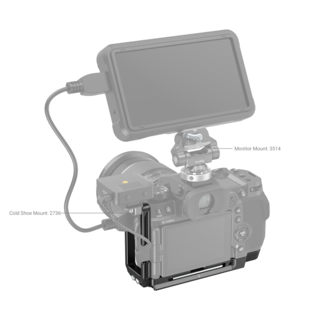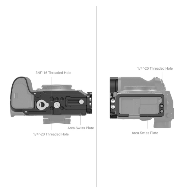 Die SmallRig L-Halterung für die FUJIFILM X-H2S 3928 wurde für den schnellen Wechsel zwischen horizontalen und vertikalen Aufnahmen entwickelt und verbessert die Griffigkeit der Kamera. Die L-Halterung wird mit einer 1/4"-20-Schraube und einem verdrehsicheren Fixierstift an der Unterseite der Kamera befestigt und verfügt über Schutzpolster, die Kratzer verhindern, sowie einen Scharnierarm an der Batteriefachabdeckung, der sich gut an die Kamera anpasst und das Griffgefühl des kleinen Fingers verbessert. Die Arca-Swiss-Grundplatte und die Seitenplatte haben jeweils eine Mittelmarkierung. In der Grundplatte befinden sich 1/4"-20-Gewindebohrungen für die Manfrotto-Schnellwechselplatte 1280, den Seitengriff 2093 usw., ein Arca-Swiss-Befestigungspunkt an der Unterseite für ein Arca-Swiss-Stativ und DJI RS 2 / RSC 2 sowie ein integriertes Riemenloch für die Handschlaufen 3848 und 2456. Auf der Oberseite der Seitenplatte befinden sich zwei 1/4"-20 Gewindebohrungen, die mit dem Cold Shoe BUC2736 für die Befestigung von Mikrofon, Licht und anderen Geräten verwendet werden können. Die dehnbare Seitenplatte ermöglicht den Zugang zum HDMI-Kabel und kann für eine 180°-Öffnung des LCD-Bildschirms vor und zurück verstellt werden. Dank des Spaltdesigns kann der Bildschirm um 60° gedreht werden. Darüber hinaus sind ein Schlitzschraubendreher und ein Sechskantschlüssel für eine schnelle Montage und Demontage im Lieferumfang enthalten.