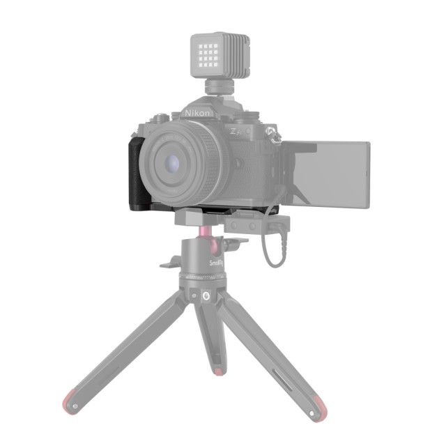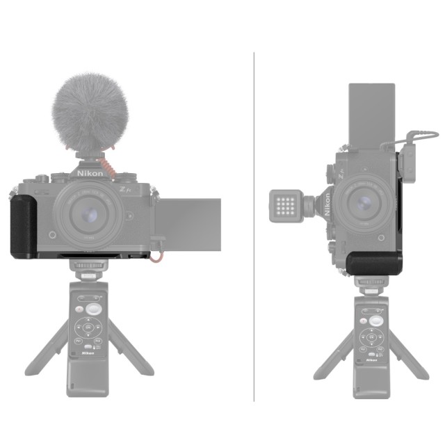 DerSmallRig L-Shape Griff für Nikon Z fc (Schwarz) 4263 wurde entwickelt, um einen komfortablen Griff zu bieten. Der Griff im Retrostil hat die gleiche Textur und Farbe wie die Kamera; die Grundplatte hat die gleiche silberne Oberflächenbehandlung wie die Kamera und passt perfekt. Der L-Griff wird über eine 1/4"-20 D-Ring-Schraube an der Unterseite an der Kamera befestigt und verfügt über eine integrierte 1/4"-20 Gewindebohrung am Griff, die vertikale Aufnahmen auf einem Stativ ermöglicht. Die Grundplatte verfügt über eine integrierte Arca-Swiss-Platte zum schnellen Umschalten auf Stativaufnahmen und eine 1/4"-20-Gewindebohrung in der Mitte, die eine Stativ- oder Manfrotto-Schnellwechselplatte unterstützt. Außerdem verfügt die Grundplatte über einen eingebauten kalten Schuh, an dem Mikrofon, Licht und anderes Zubehör befestigt werden können; die Platte hat auch einen Schlitz für eine Handschlaufe. Der Griff hat ein kompaktes und leichtes Design, das leicht zu transportieren ist.