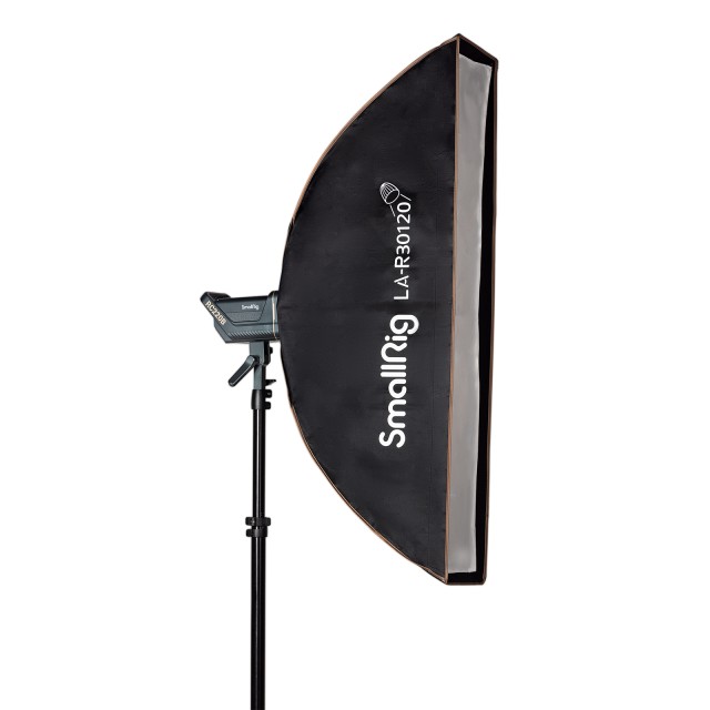 LA-R30120 ist eine Streifensoftbox mit den Maßen 30 x 120 cm. Die universelle Bowens-Halterung macht sie kompatibel mit SmallRig RC120D/RC120B, RC220D/RC220B, RC350D/RC350B, RC450D/RC450B und anderen Bowens-Halterungen auf dem Markt. Standardmäßig mit Innen-/Außendiffusoren und einem 45°-Wabenraster für zusätzliche Richtwirkung in verschiedenen Szenen.