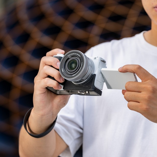 Das SmallRig Leather Case Kit für Sony ZV-E10 II (Schwarz) 4777 wurde entwickelt, um Ihre Kamera zu schützen und ihr klassisches Aussehen zu bewahren. Das Kit umfasst eine Ledertasche und eine Handschlaufe, die beide aus strapazierfähigem und atmungsaktivem Vollnarbenleder gefertigt sind. Der integrierte Schaumstoff-Handgriff bietet einen ergonomischen Griff mit zusätzlicher Sicherheit, während das weiche Innenfutter die Kamera vor Kratzern schützt. Eine 1/4"-20 Rändelschraube an der Unterseite ermöglicht die werkzeuglose Befestigung der Kamera.