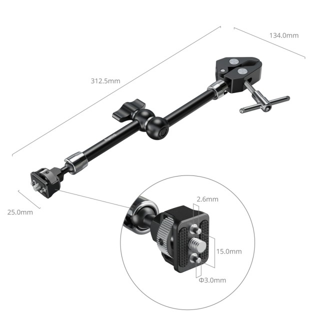 SmallRig Magic Arm mit krabbenförmiger Klemme (11") 5311 besteht aus einem Magic Arm und einer krabbenförmigen Klemme. Ein Ende ist mit einem 1/4