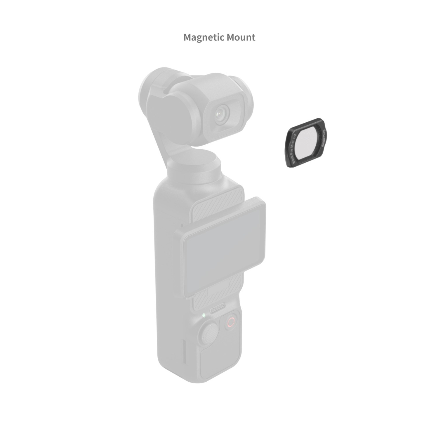 Das intuitive magnetische Befestigungssystem ermöglicht eine schnelle Anbringung des Filters und gewährleistet einen sicheren Halt während des Betriebs. Genießen Sie mehr kreative Möglichkeiten und profitieren Sie gleichzeitig von der charakteristischen Mobilität des Pocket 3.