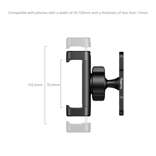 SmallRig Attachable Phone Clamp Support ist für Videoaufnahmen in Innenräumen konzipiert. Sie lässt sich sicher an flachen, eisenhaltigen Oberflächen befestigen (z. B. Fitnessgeräte, Eisenmöbel). Die magnetische Basis der Klasse N54 sorgt für eine stabile Verbindung. Die Telefonklemme eignet sich für Smartphones mit einer Breite von 55-105 mm (2,2-4,1") und einer Dicke von weniger als 15 mm (0,6") und unterstützt die iPhone-Modelle 12-16 sowie die meisten Android-Geräte. Der um 360° verstellbare Kugelkopf ermöglicht eine stufenlose Winkelanpassung für eine optimale Bildgestaltung.