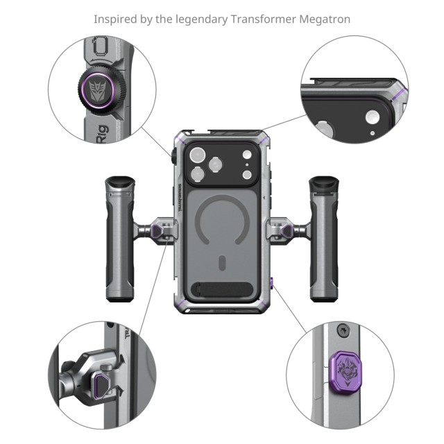 Das SmallRig Dual Handheld Video Kit für iPhone 17 Pro (Megatron Edition) 5585 ist eine professionelle Dual-Handheld-Lösung, die speziell für das iPhone 17 Pro entwickelt wurde und professionelle Videoaufnahmen, Live-Streaming und die Produktion von Kurzfilmen ermöglicht. Dieses umfassende Kit enthält eine Handyhülle, einen Videokäfig, einen drehbaren seitlichen Griff mit Funksteuerung, einen drehbaren seitlichen Griff, einen weichen TPU-Stoßfänger und zwei Rückplatten für externe Objektive.