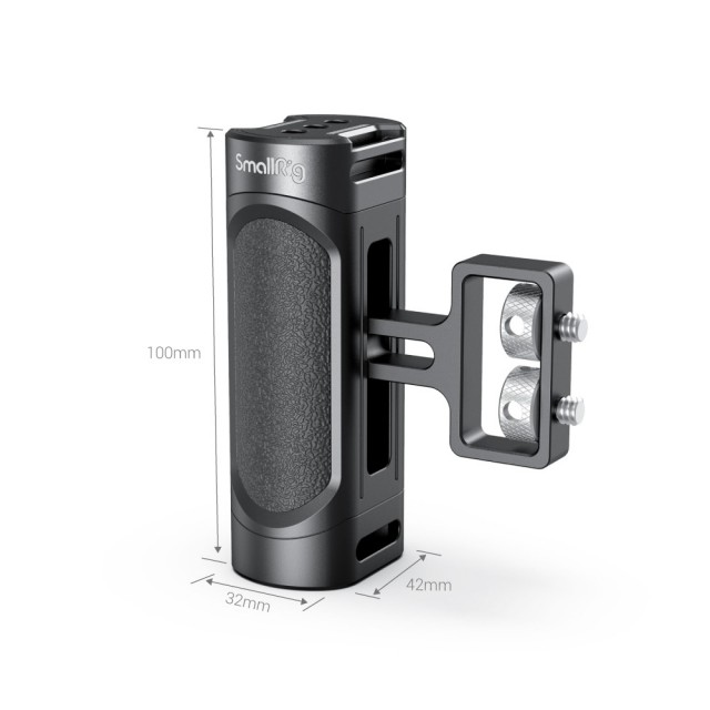 Der SmallRig Mini Side Handle (1/4"-20 Schrauben) 2916 ist für spiegellose Kameras, Digitalkameras und andere kleine Kameras konzipiert. Zwei 1/4"-20 Schrauben sind an der Seite des Käfigs angebracht. Der Handgriff bietet zusätzliche Befestigungsmöglichkeiten - Blitz und Mikrofon können über die Kaltgerätebuchse 1241 angebracht werden, und eine Handschlaufe, wie die 2456, kann durch die Öse befestigt werden, um ein versehentliches Fallenlassen der Kamera zu verhindern. Hochgradig verstellbar, um verschiedene Käfighöhen auszugleichen und einen schnellen Wechsel von Links- zu Rechtshändern über einen eingebauten Schlüssel zu unterstützen. der tragbare Griff aus Aluminiumlegierung und Kunststoff mit ergonomischem Design bietet Filmemachern ein reibungsloses und komfortables Aufnahmeerlebnis.