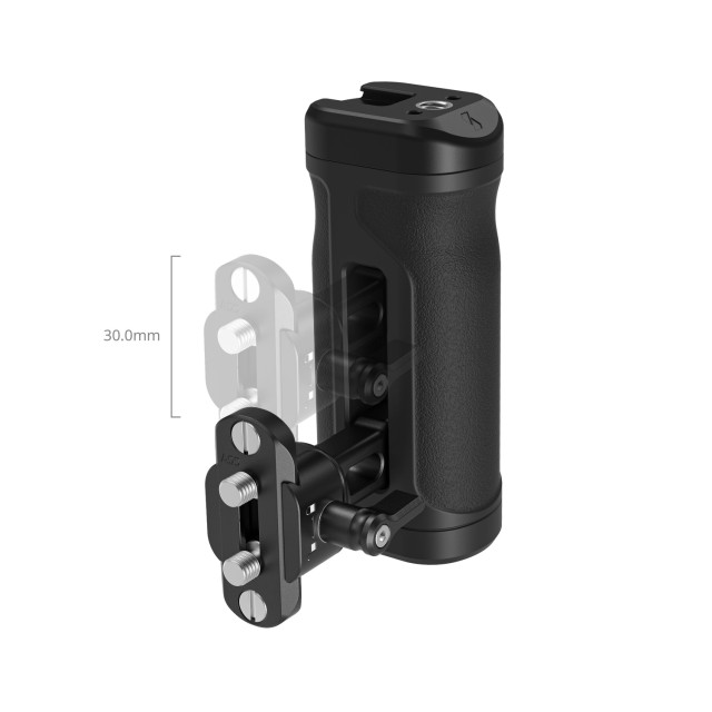 Der Seitengriff kann auf beiden Seiten des Käfigs montiert werden. Um die Seiten zu wechseln, lösen Sie den Aluminiumverbinder und konfigurieren Sie ihn auf der gegenüberliegenden Seite des Griffs neu. Er umfasst einen NATO-Klemmenverbinder und eine NATO-Schiene für die nahtlose Integration in verschiedene Kamerakäfige.