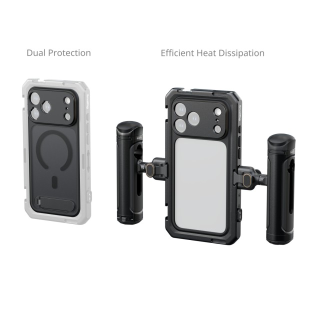 Das SmallRig Mobile Dual Handheld Kit für iPhone 17 Pro 5540 ist eine professionelle Dual-Handheld-Lösung, die speziell für das iPhone 17 Pro entwickelt wurde und professionelle Videoaufnahmen, Live-Streaming und die Produktion von Kurzfilmen ermöglicht. Dieses umfassende Kit enthält eine Handyhülle, einen Videokäfig, einen drehbaren seitlichen Griff mit Funksteuerung, einen drehbaren seitlichen Griff und einen weichen TPU-Stoßfänger.