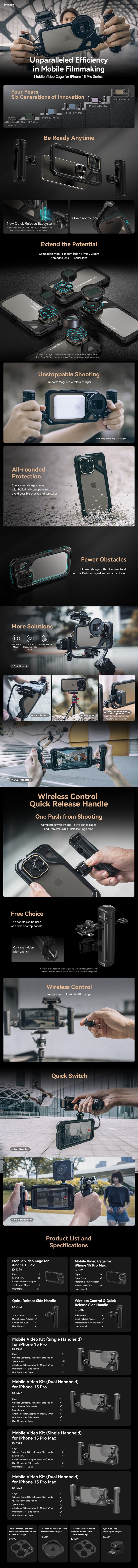 SmallRig Mobile Video Cage für iPhone 15 Pro Max 4391B ist ein multifunktionaler Handy-Käfig, der speziell für das iPhone 15 Pro Max entwickelt wurde, um hochwertige Videoaufnahmen, Live-Streaming und Vlogs zu realisieren. Der kompakte und formschlüssige Käfig wiegt nur 116 g. Sie verfügt über 1/4"-20-Gewindelöcher und Kaltstutzen zur Befestigung von Handgriff, Stativ, Mikrofon, LED-Videolicht usw., was durch ein brandneues Schnellverschluss-Ökosystem noch einfacher und schneller geht.