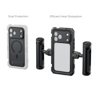 Der SmallRig Mobile Video Cage für iPhone 17 Pro (Basic Edition) 5545 ist eine professionelle Erweiterungslösung für das iPhone 17 Pro, die professionelle Videoaufnahmen, Live-Streaming und Kurzfilmaufnahmen ermöglicht. Dieses Kit enthält einen Videokäfig und einen weichen TPU-Stoßfänger.