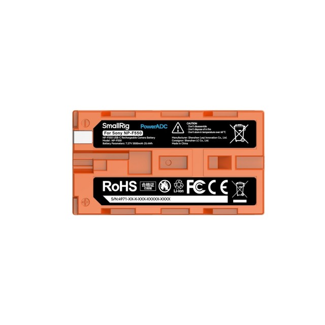 Der SmallRig NP-F550 USB-C Kamera-Akku verfügt über einen USB-C-Anschluss, der über eine Powerbank, eine Steckdosenleiste, ein Autoladegerät oder ein spezielles Ladegerät geladen werden kann. Mit Hochstromladung (5V 2,3A) und 3500mAh Nennkapazität können Sie den Akku in 3 Stunden voll machen und die Ausrüstung länger betreiben. Dank seiner hohen Kompatibilität und Vielseitigkeit kann dieser Artikel auch Rigs wie Kameras, LED-Videolampen, Monitore, Slider usw. mit Strom versorgen. Der optisch auffällige Akku verfügt über ein feuerfestes, strapazierfähiges ABS- und PC-Gehäuse, das gefrostet ist, um einen zarten Touch zu haben.